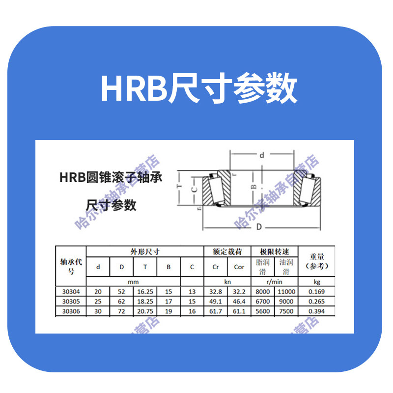 📚 HRB哈尔滨轴承30304 30305 30306 30307 30308 30309圆锥滚子轴承