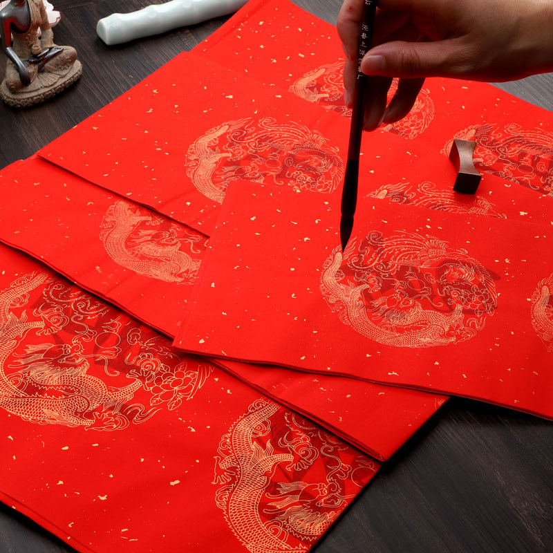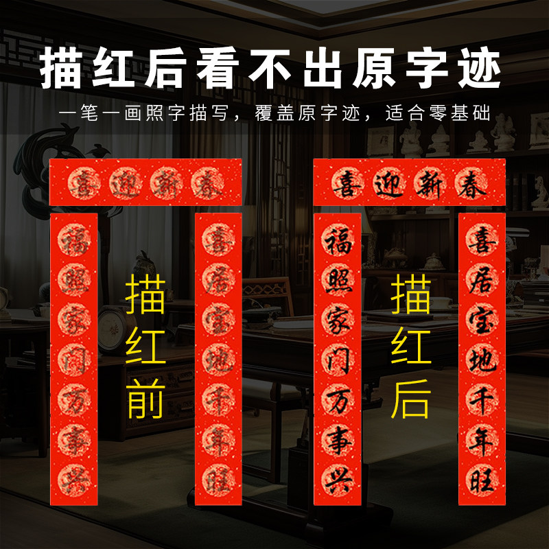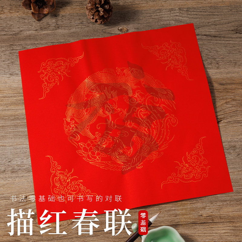 📚 零基础描红款斗方宣纸对联万年红福字临摹春联龙凤加厚洒金手写书法红纸颜体楷书行书欧体日进斗金招财进宝