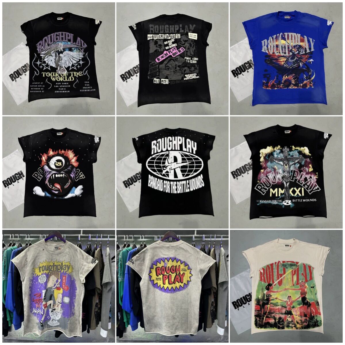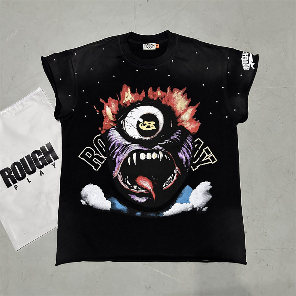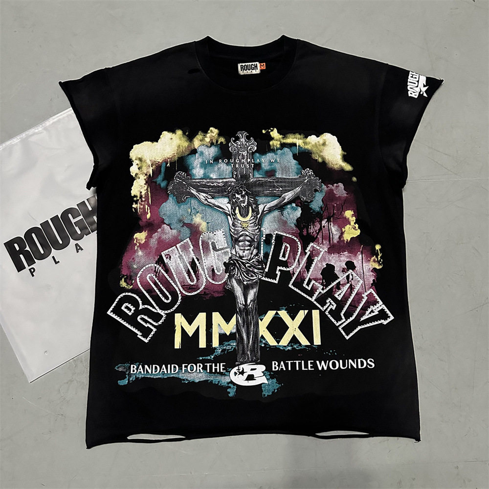 📚 美潮RoughPlay复古印花高街烫钻休闲洗水做旧坎肩背心T恤
