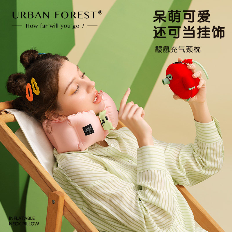 📚 URBAN FOREST 旅行充气颈枕 鼹鼠可爱颈枕 支撑力好 坐飞机高铁