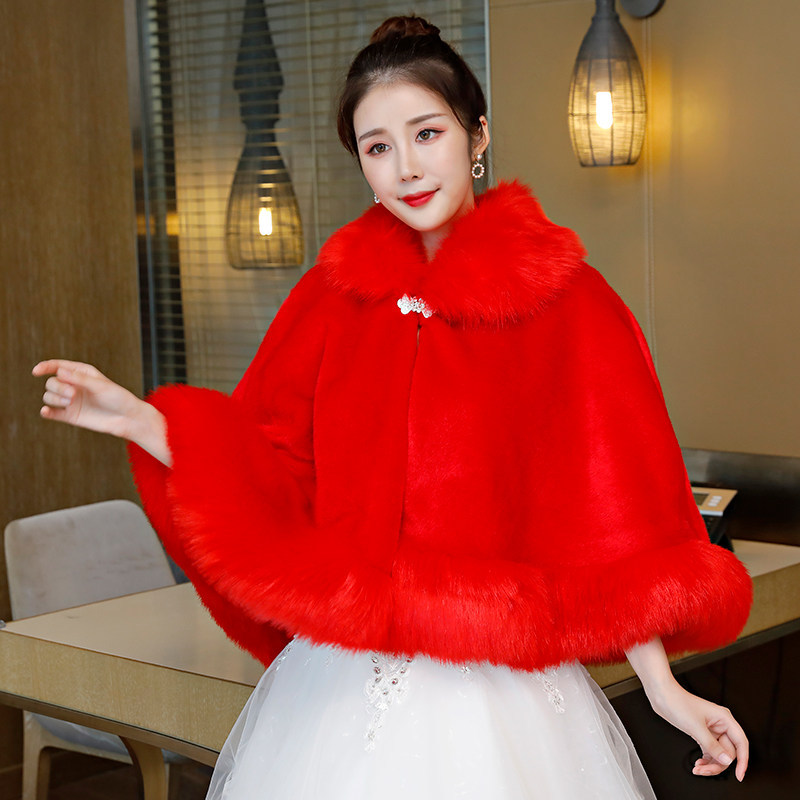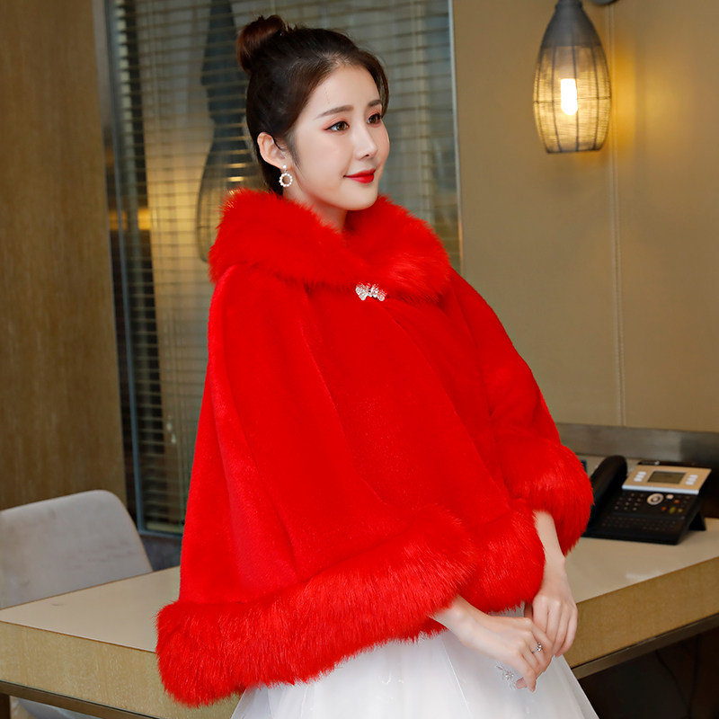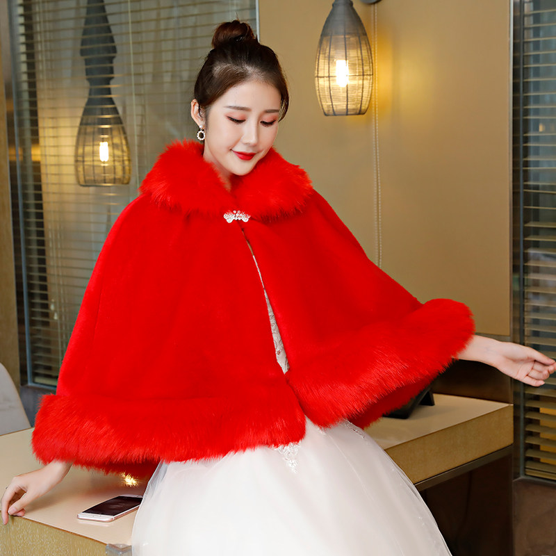 📚 毛披肩新娘结婚冬季加厚新款婚纱保暖神器礼服旗袍外搭白红色外套