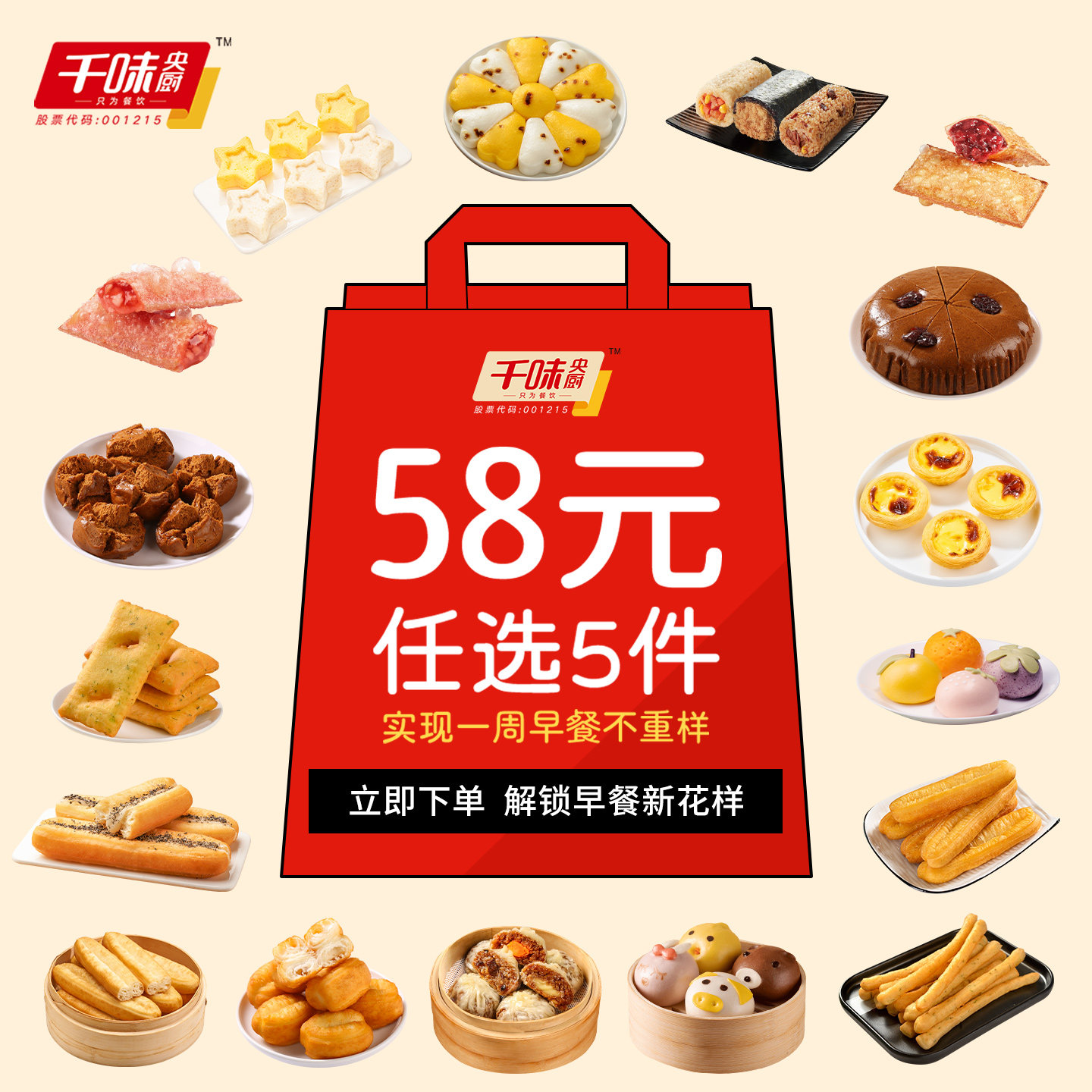 📚 【中式早餐丨任选5件】千味央厨中式早餐不重样油条烧饼卡通包
