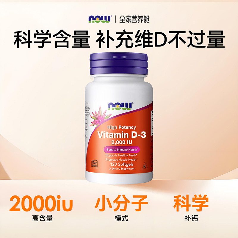 📚 Now诺奥活性维生素D3K2胶囊2000iu补钙防腿抽筋中老年人美国进口