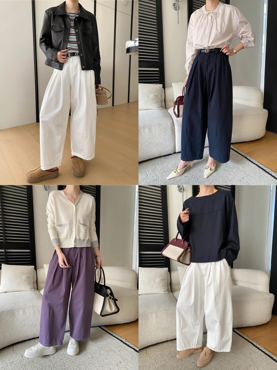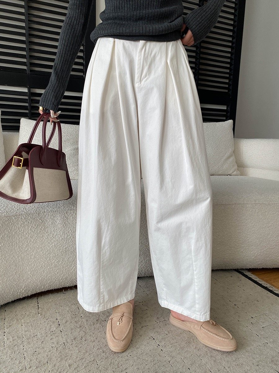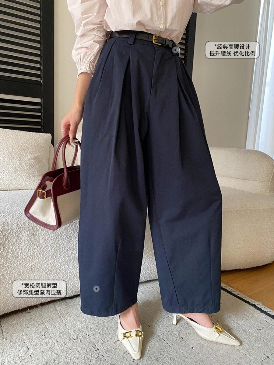 📚 司南 早春新款 随性松弛感半松紧高腰宽松显瘦休闲阔腿裤 SN8652