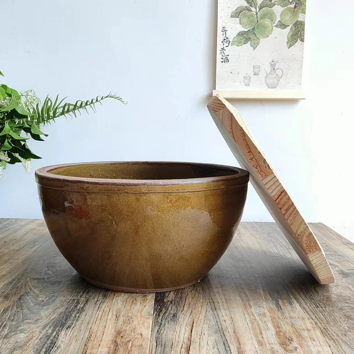 📚 陶瓷和面盆家用老式猪油盆带盖发酵盆腌肉盆土陶盆揉面盆腌菜瓦盆