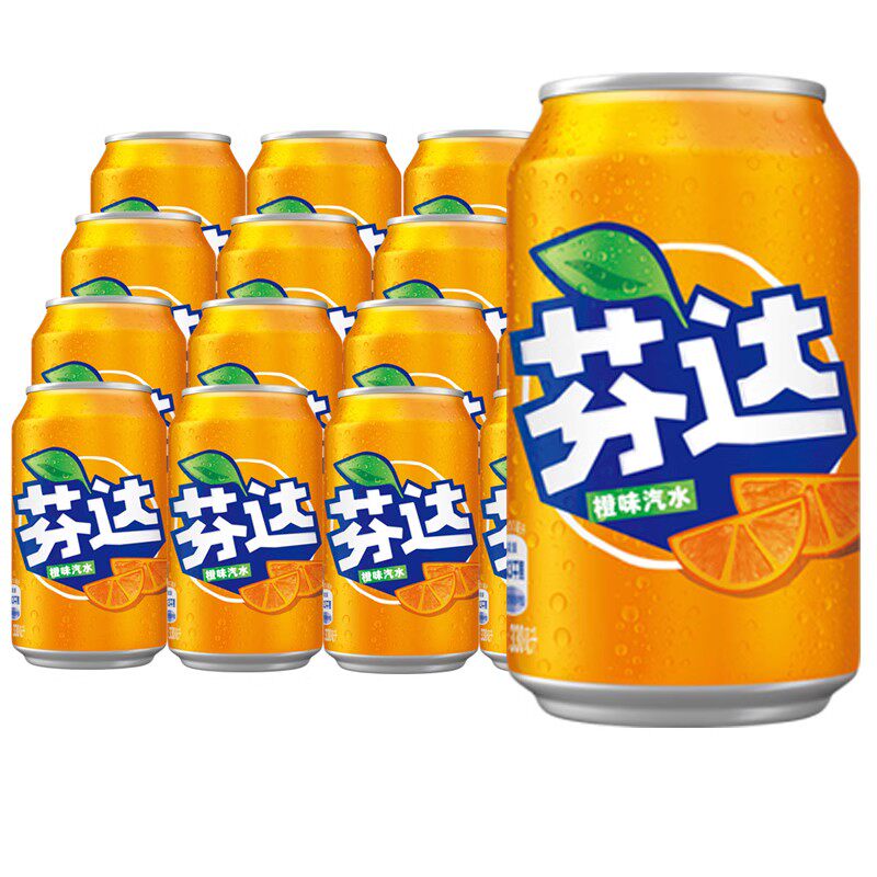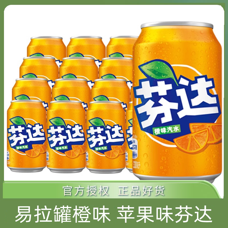 📚 芬达橙味芬达 苹果味芬达汽水330ml易拉罐整箱碳酸饮料果味饮品听