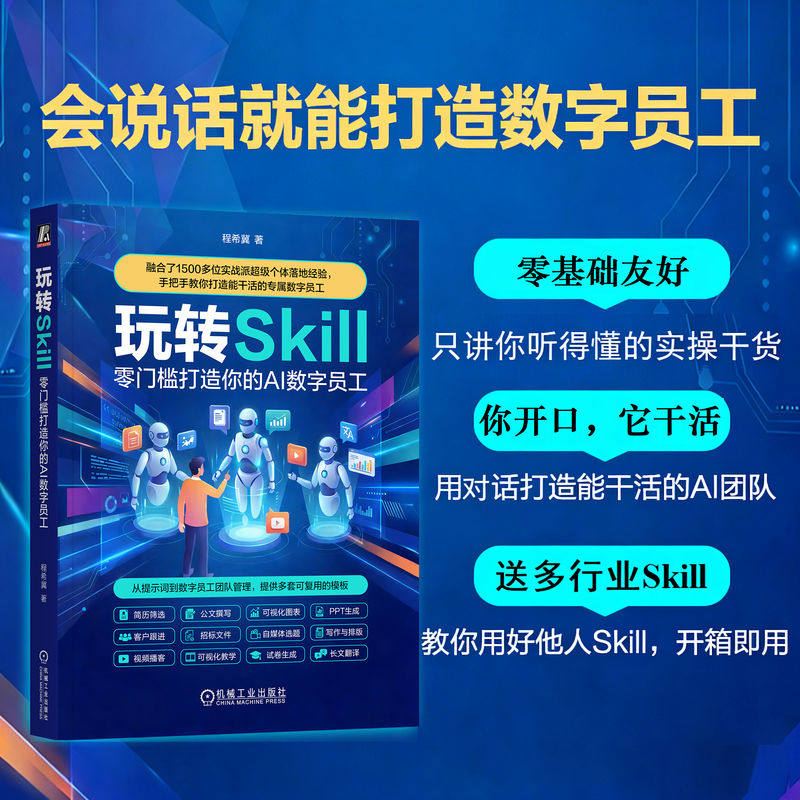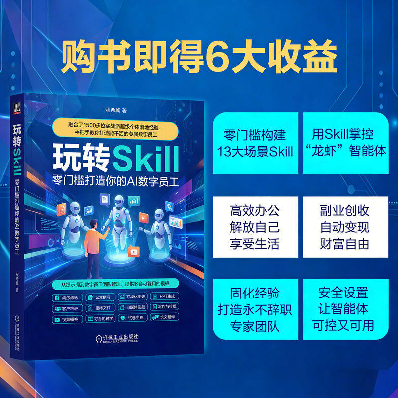 📚 官网现货 玩转 Skill:零门槛打造你的 AI 数字员工 智能体 Agent OpenClaw 龙虾 小龙虾 人工智能 AI Agent Skills Skills Manus