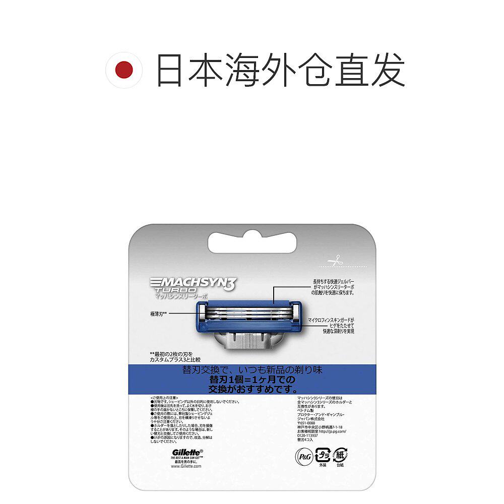 📚 【日本直邮】Gillette 剃刀刀片 Mach3 Turbo 無 4個 剃鬚 除毛正