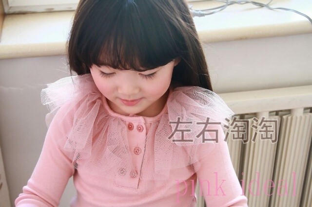 📚 女童韩版春装新款 公主双层纱网大翻领纯棉长袖T恤 打底衫