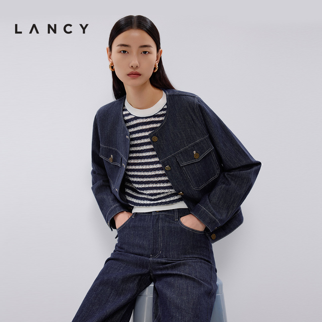 📚 【宋佳同款】LANCY/朗姿2025春新款时尚复古牛仔夹克高级感短外套