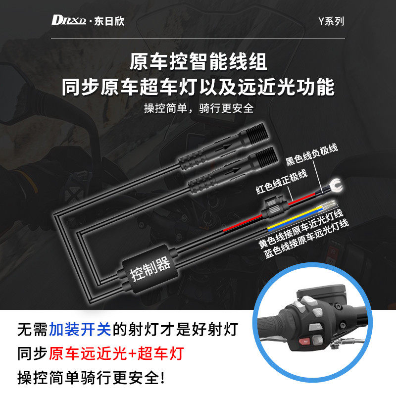 📚 东日欣摩托车Y1原车控射灯改装隐藏led强光灯电动车铺路远近一体