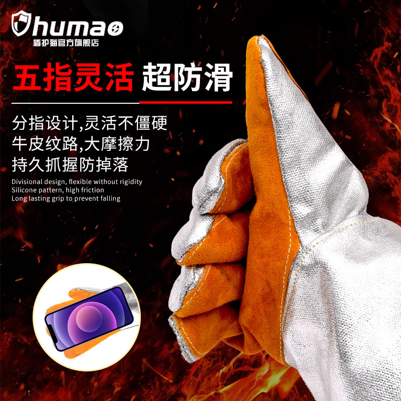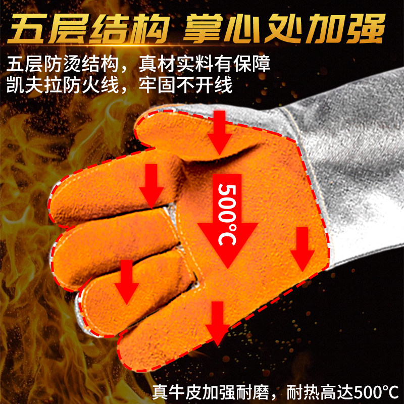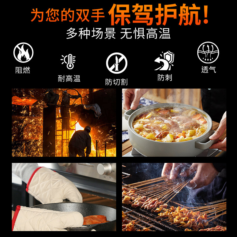 📚 耐高温手套防烫隔热防火500度五指灵活工业级炉前工加厚锅炉熔炉