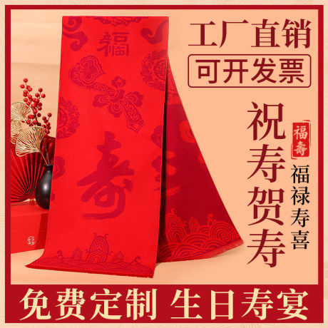 📚 老人生日红围巾祝寿红色寿宴寿星拜寿重阳节围巾定制90岁80大寿