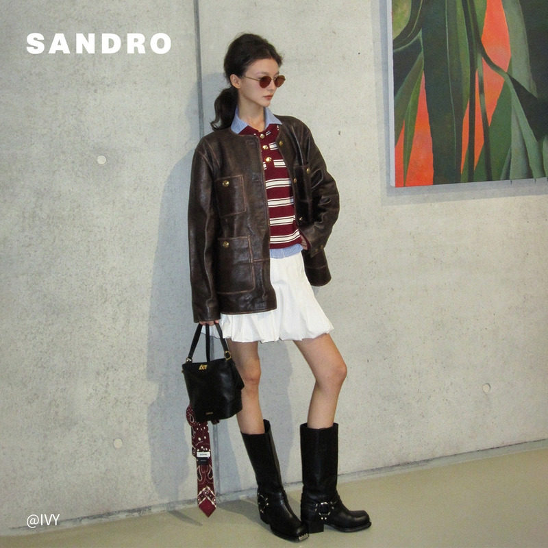 📚 季末7折SANDRO博主同款2025秋冬新款女装法式撞色翻领针织POLO衫