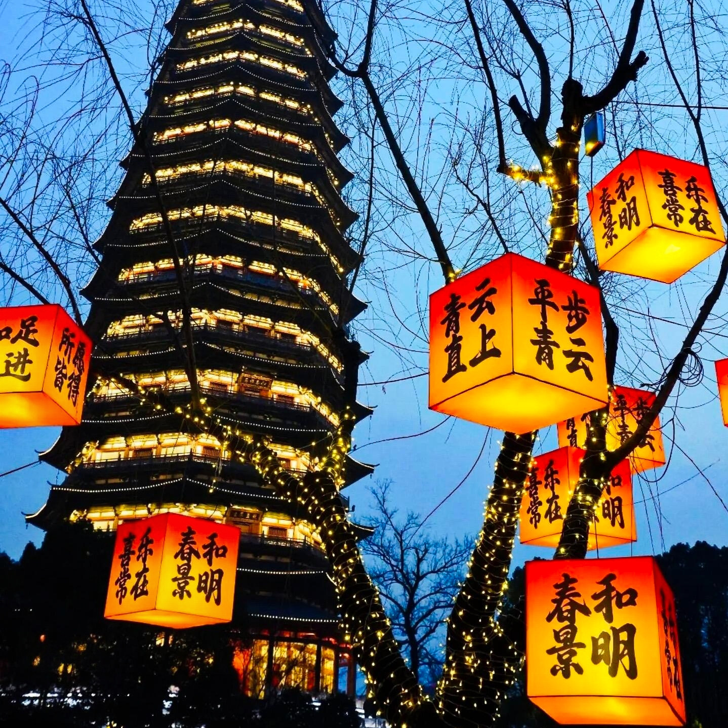 📚 新年马年不夜城灯笼做异形花灯景区步行街古镇景区方盒子定制灯笼