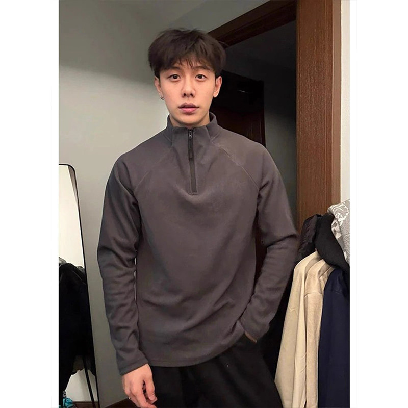 📚 美式半拉链德绒打底衫男款冬季宽松休闲运动卫衣内搭半高领上衣潮