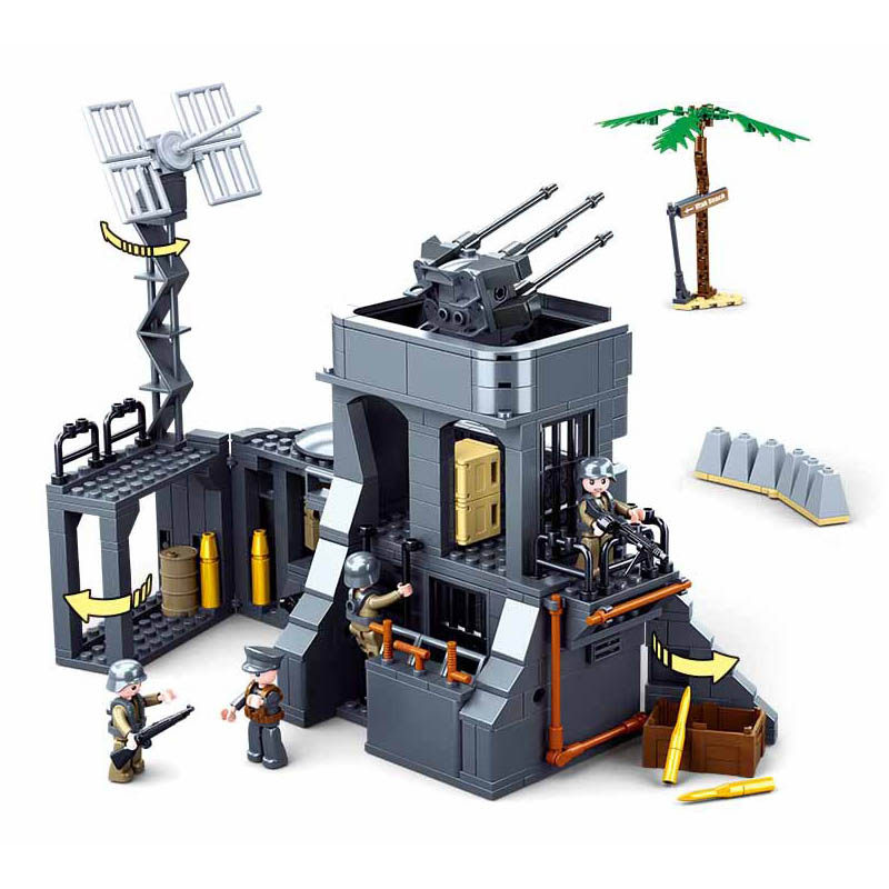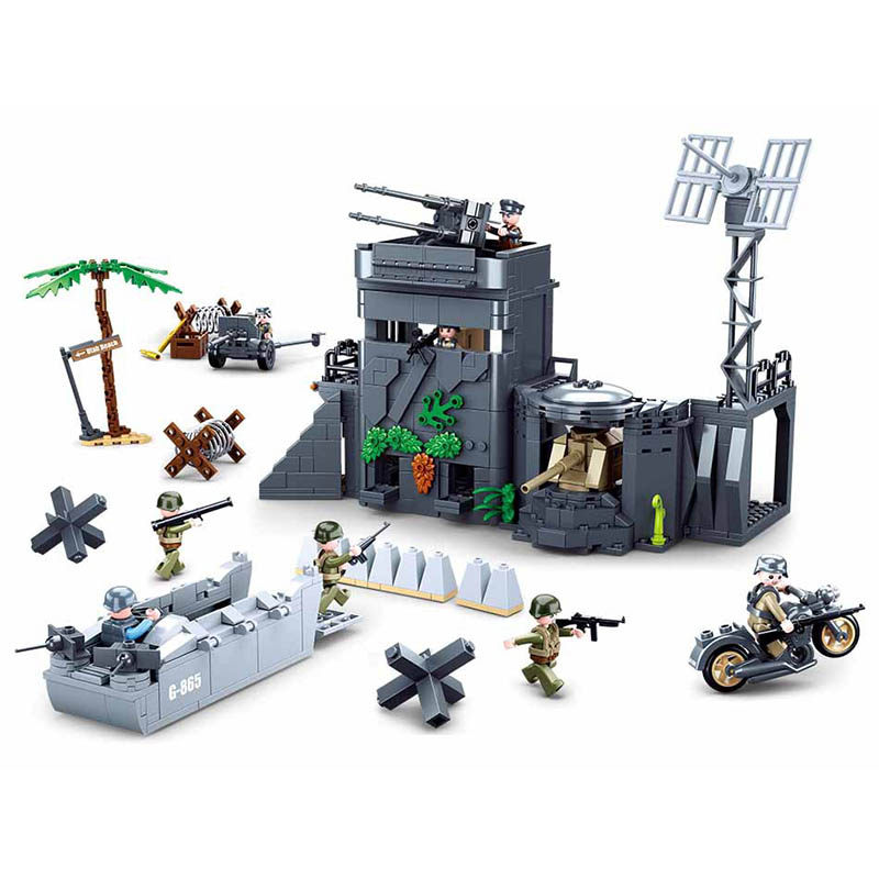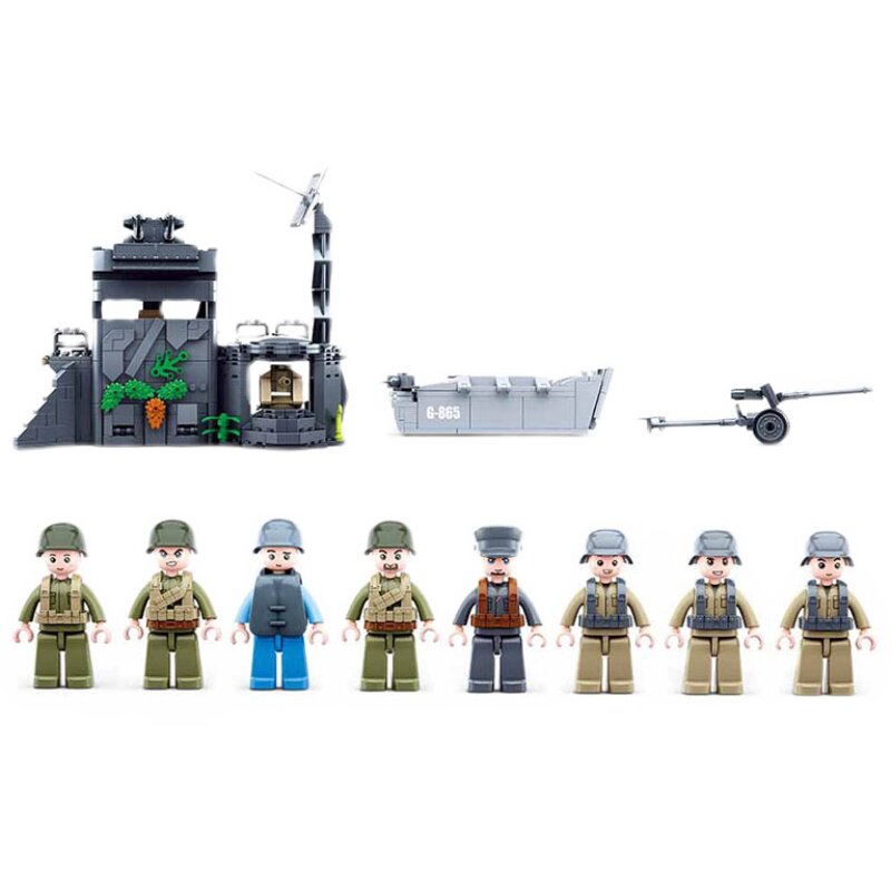 📚 世界大战场景模型战争堡垒碉堡大炮摩托登陆男孩军事城堡积木玩具