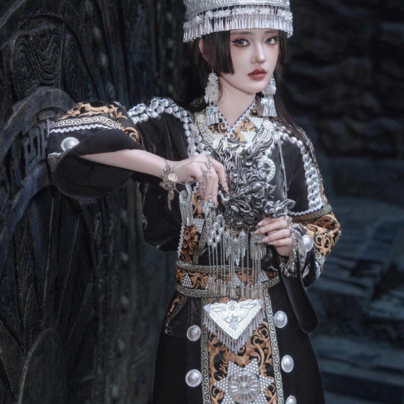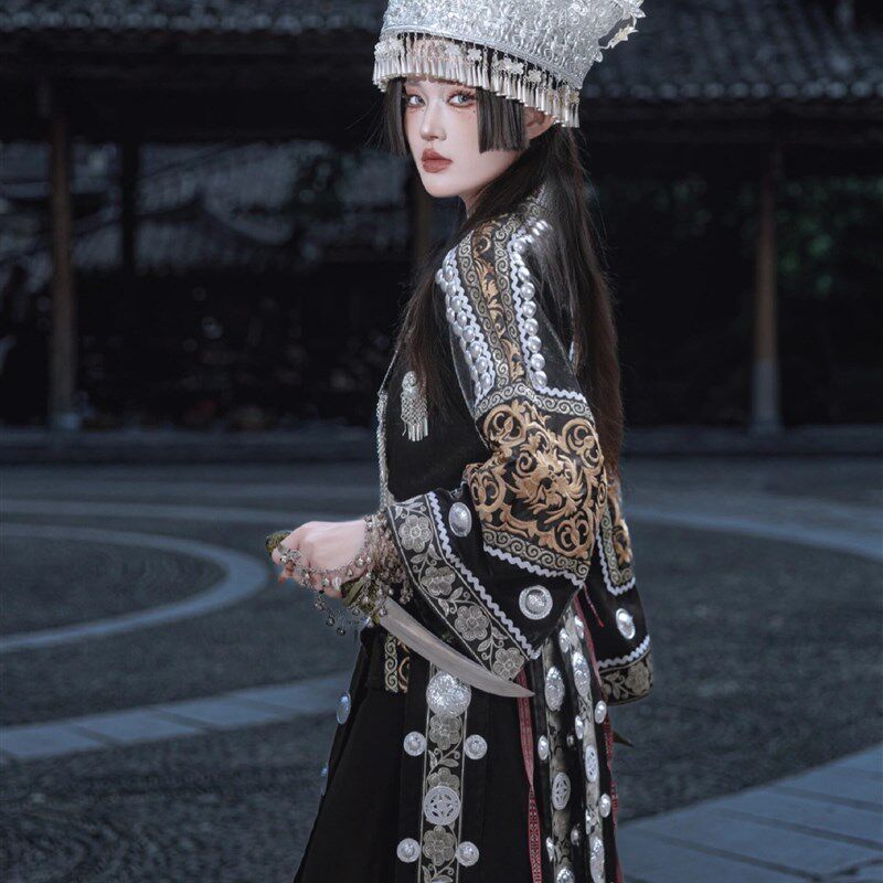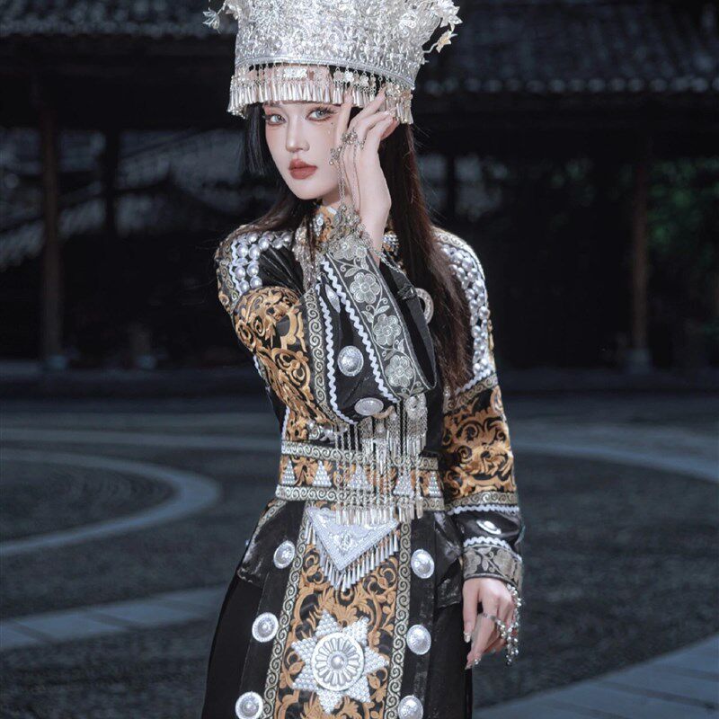 📚 秋冬苗族服装女黑色土家族盛装少数民族苗疆少女旅拍摄影演出服新