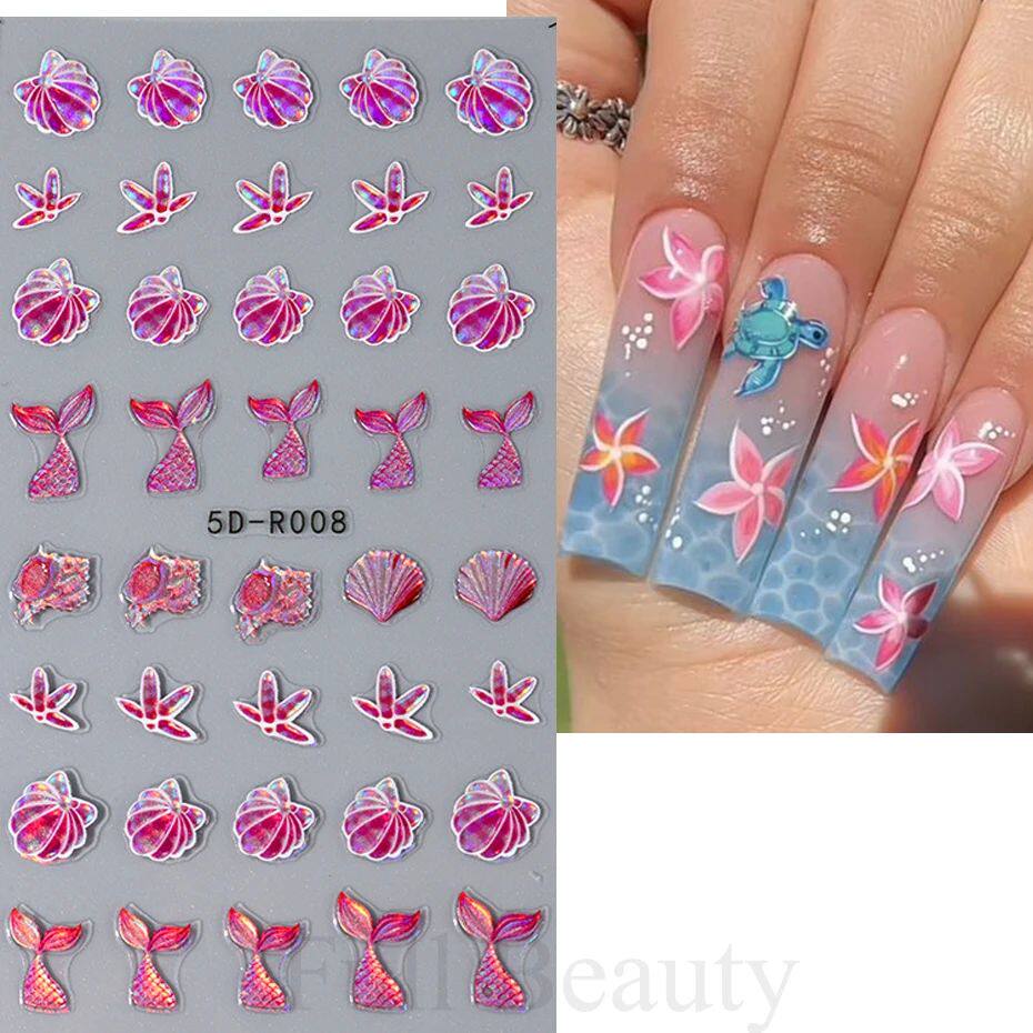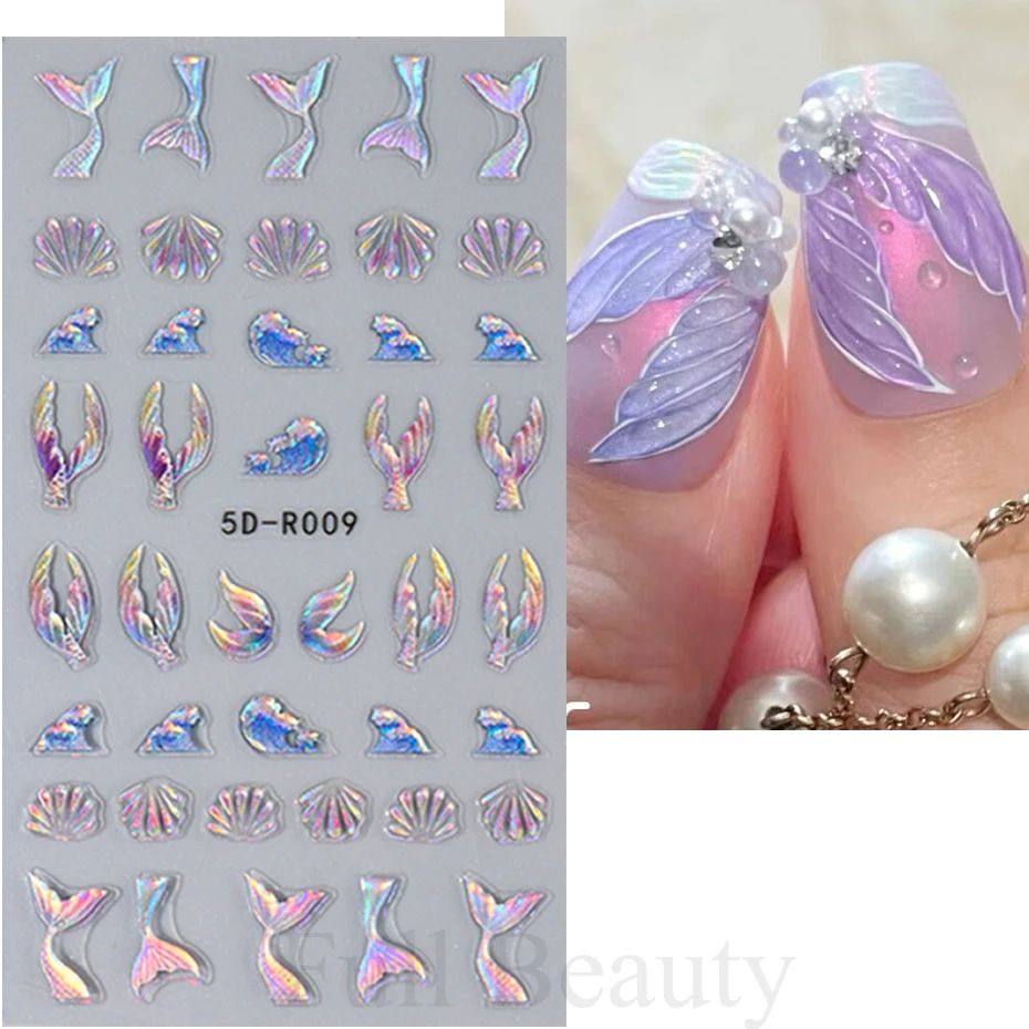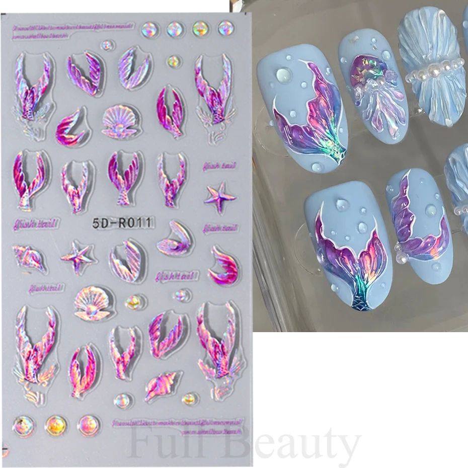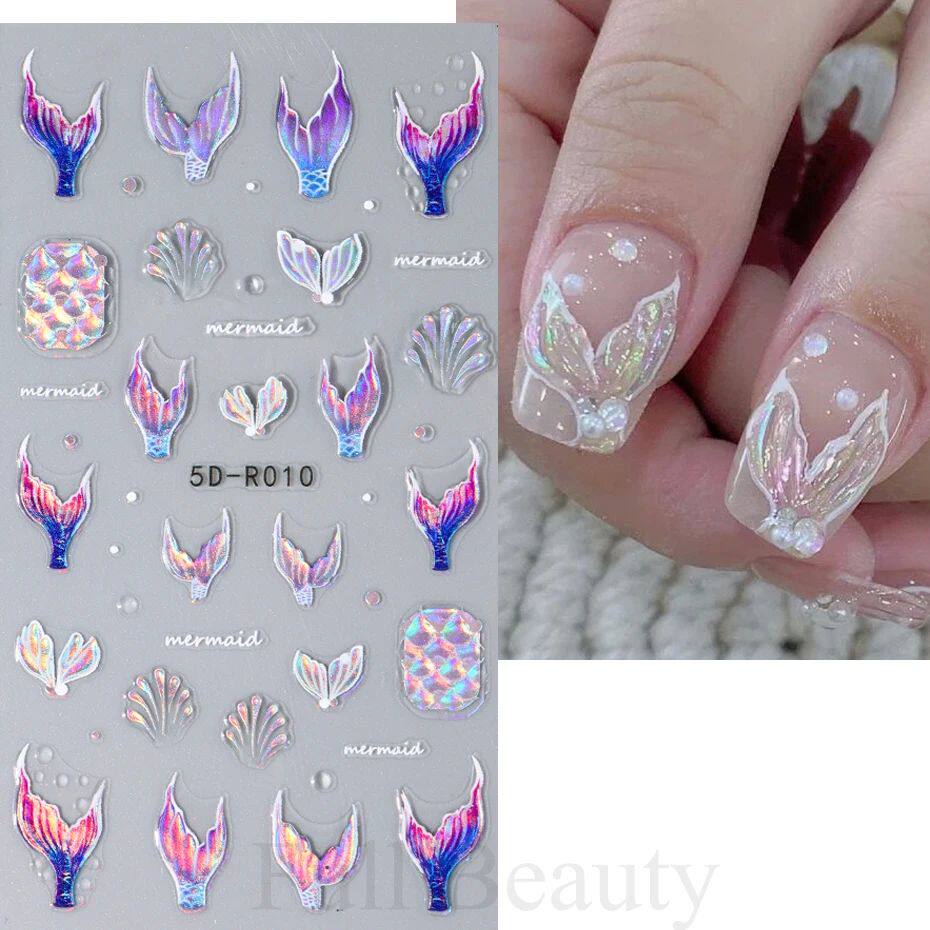 📚 Shining Mermaid Tail Nail Stickers Holographic Shell Star 5D