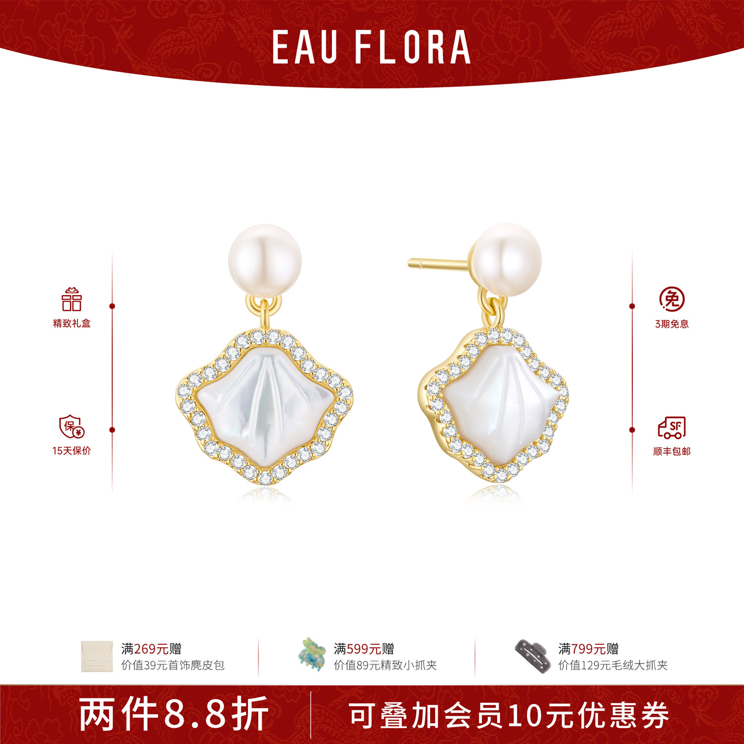 📚 EAUFLORA白贝贝壳珍珠耳钉轻奢高级设计感女款纯银针耳饰度假风