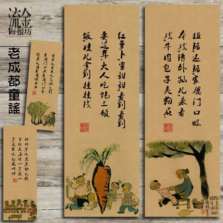 📚 老成都童谣海报 复古文艺牛皮纸装饰画酒吧挂画壁画 画芯