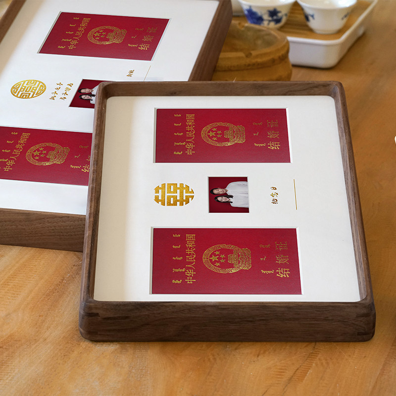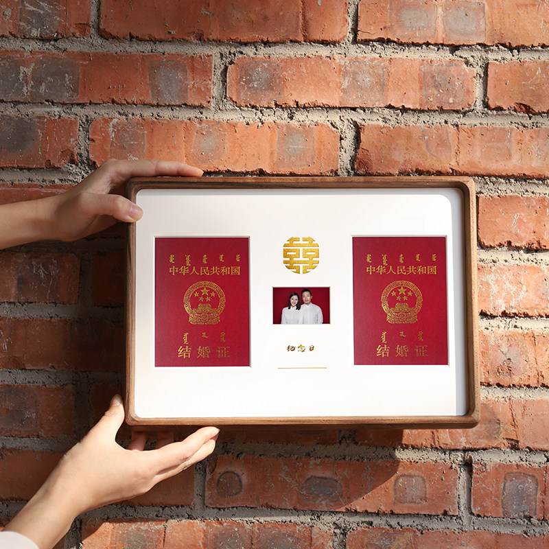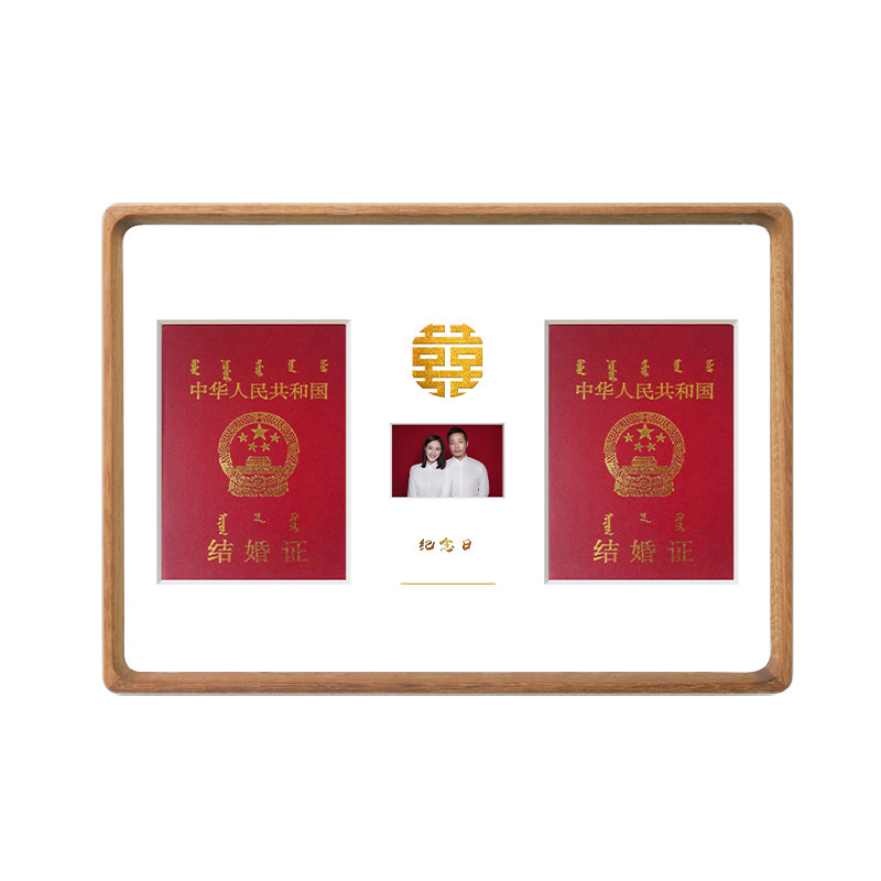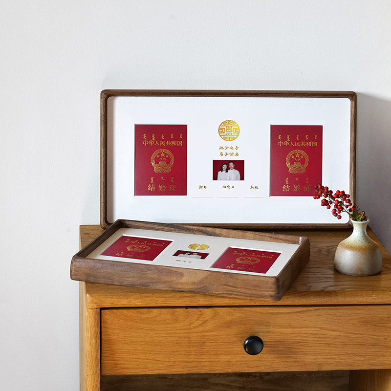 📚 结婚登记照相框摆台洗照片收纳实木婚姻结婚照纪念领证结婚证框