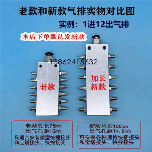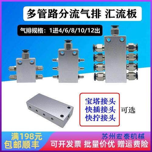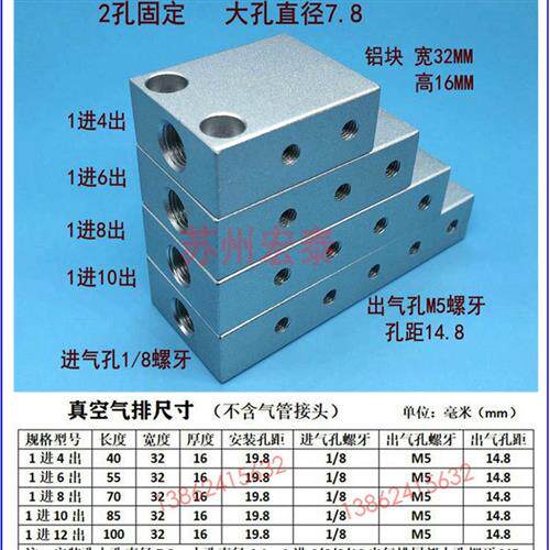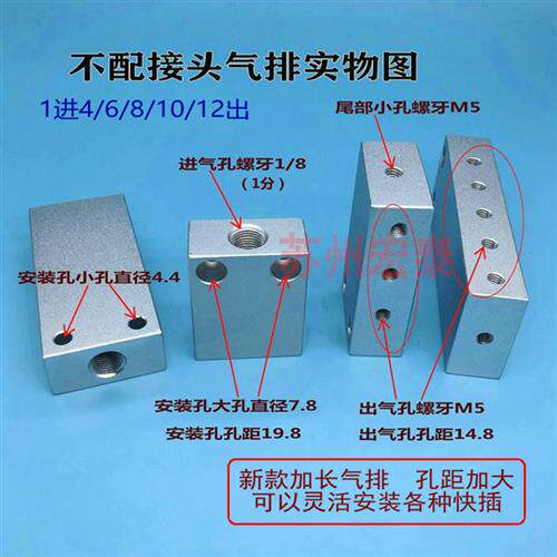 📚 自动化气动汇流板接头多管路真空分流气排1出4/6/8/10/12机械手