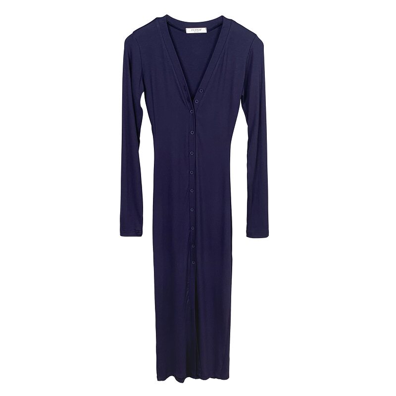 📚 韩国东大门新款修身性感辣妹纯欲显身材女人味开叉包臀长袖连衣裙
