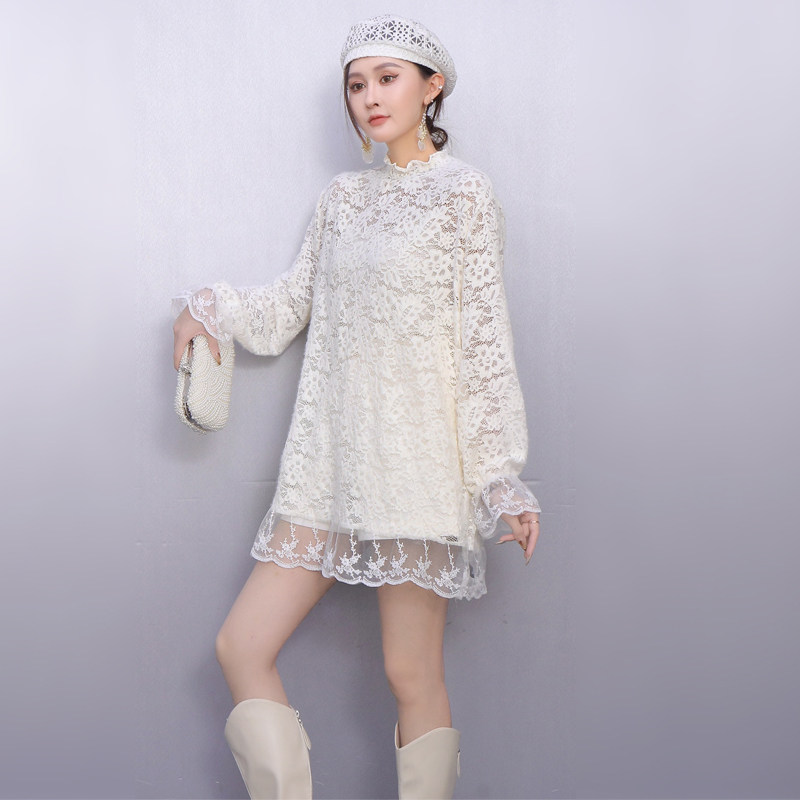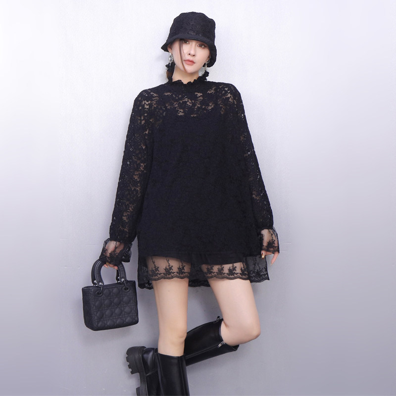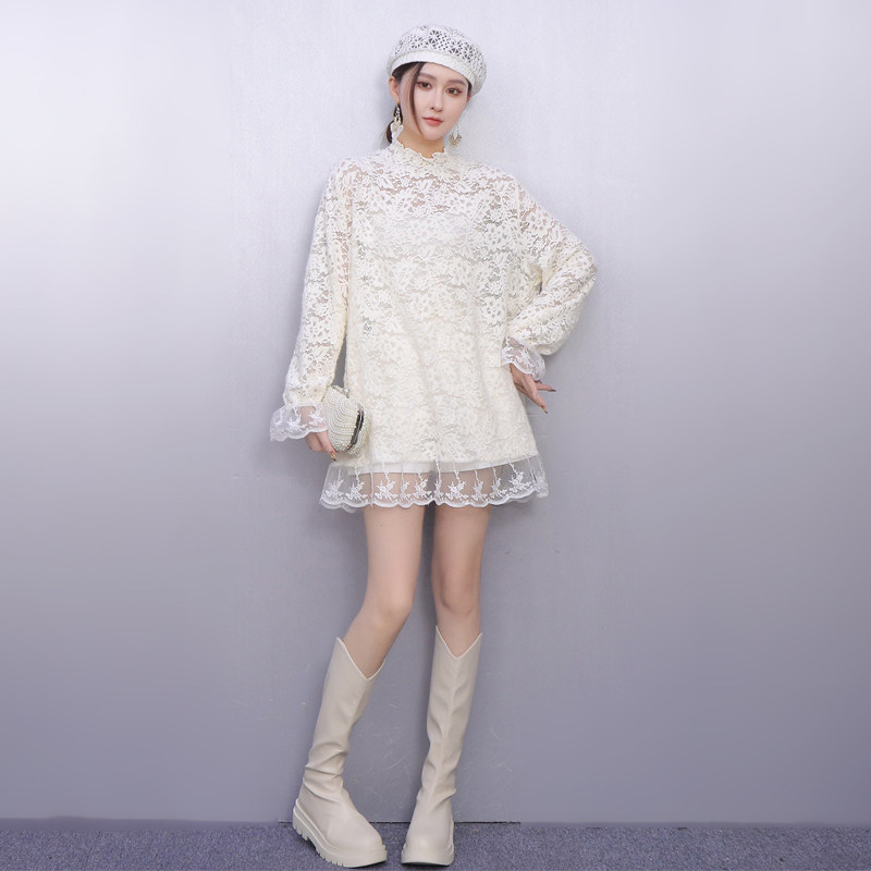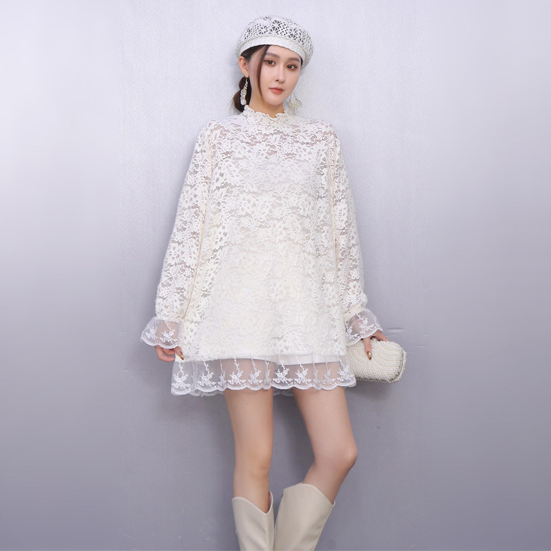 📚 2026春新款蕾丝衫女长袖镂空荷叶边高领宽松显瘦优雅百搭打底衬衫