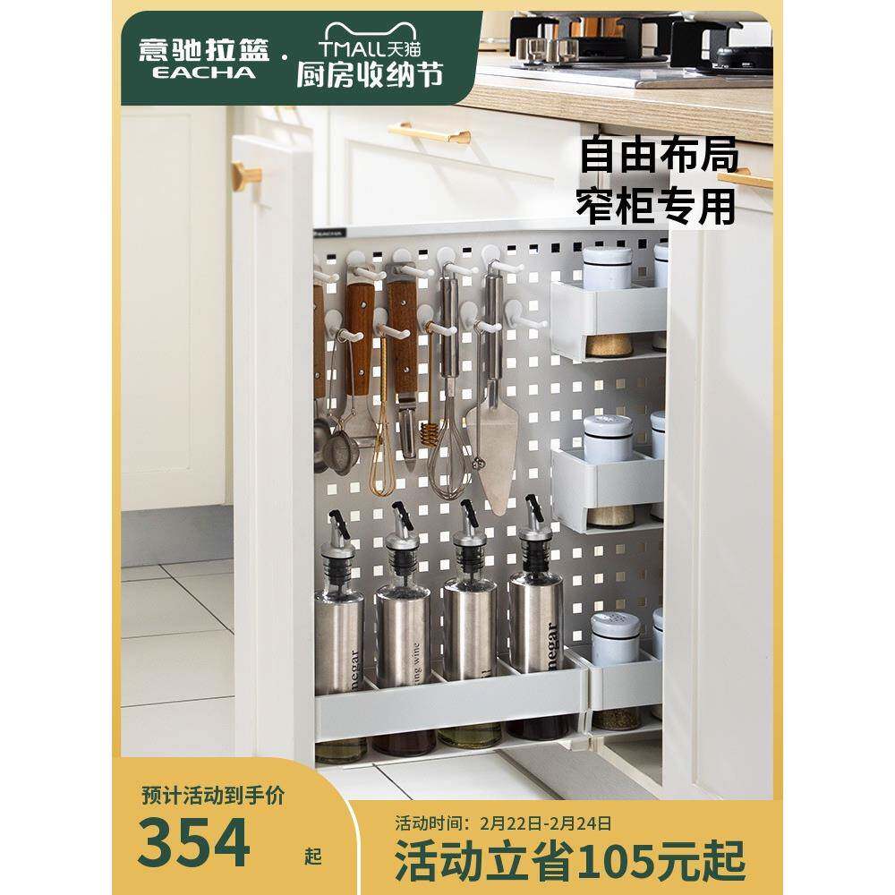 📚 ft侧拉篮调味品调料厨房橱柜抽屉式收纳洞洞板侧装拉篮超窄拉篮