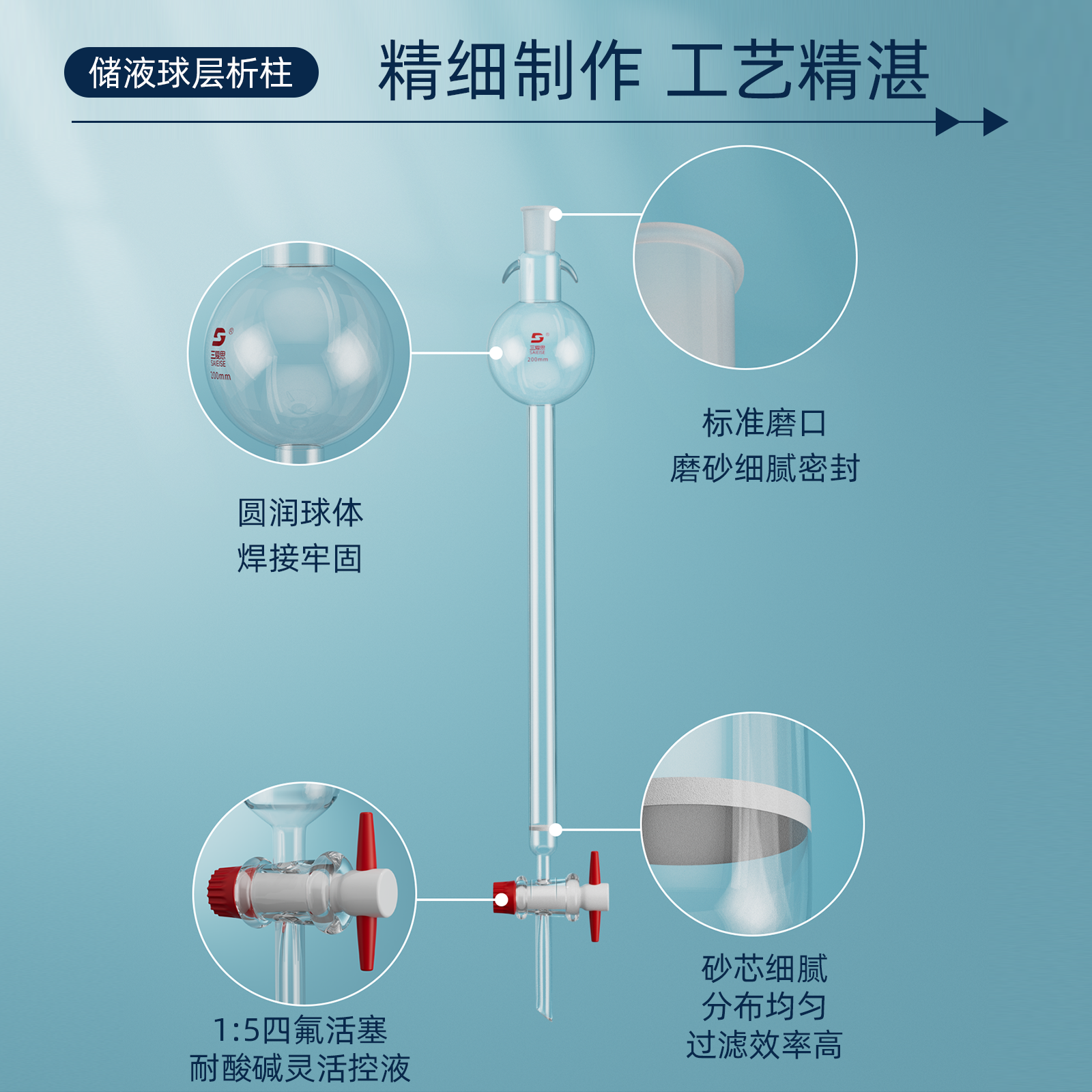 📚 三爱思 层析柱X13 具储液球标准口 带砂芯具四氟活塞 石油分析吸附柱 高硼硅玻璃 可定制 物理化学实验室器材