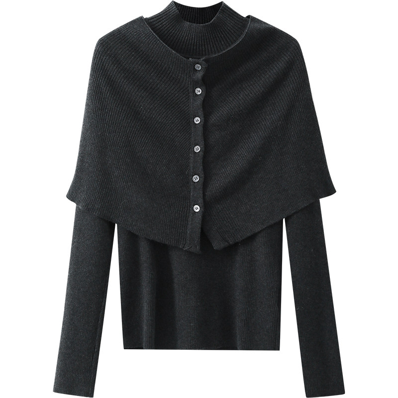 针织衫深灰披肩件套毛衣