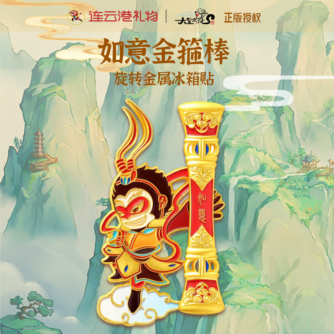 📚 唤醒西游记忆连云港花果山孙悟空金属冰箱贴可转动金箍棒纪念品