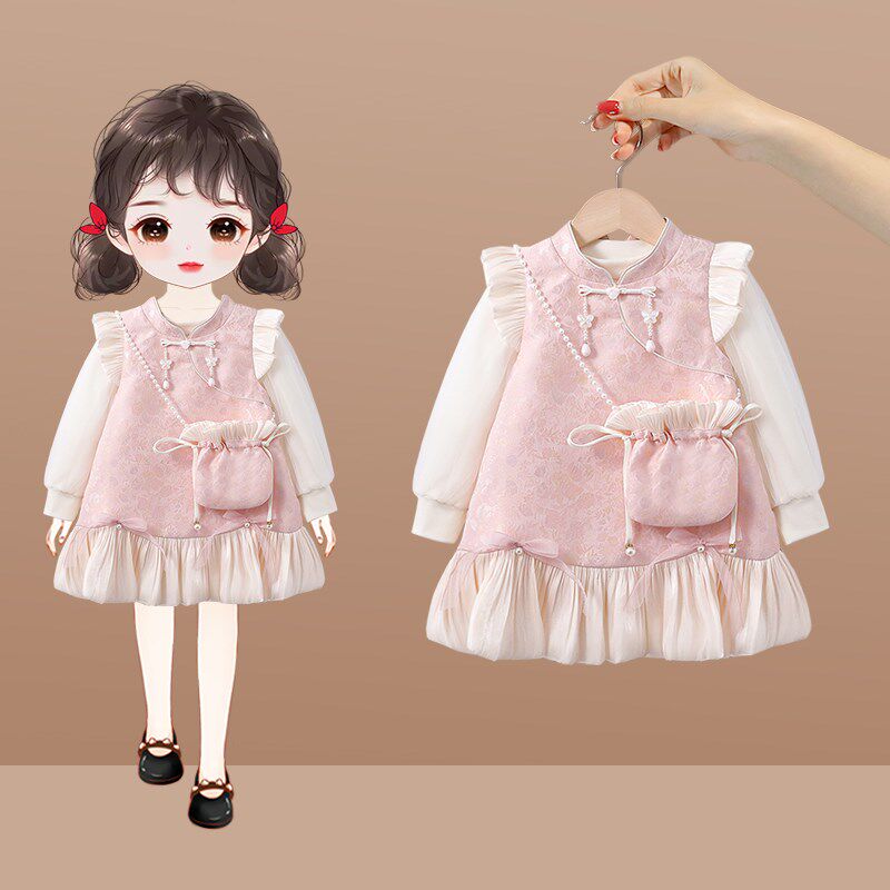 📚 童装女童裙子春秋款2025新款洋气儿童开春连衣裙女宝宝公主两件套