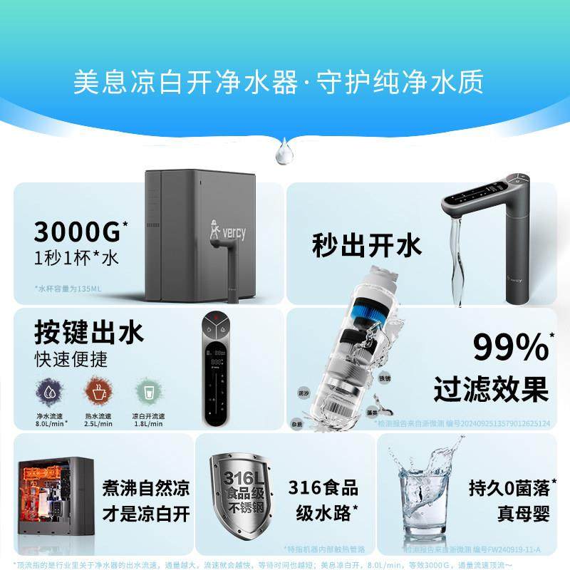 📚 德国Vercy凉白开 净水机家用RO反渗透厨下0阻垢剂净水器RC45净热