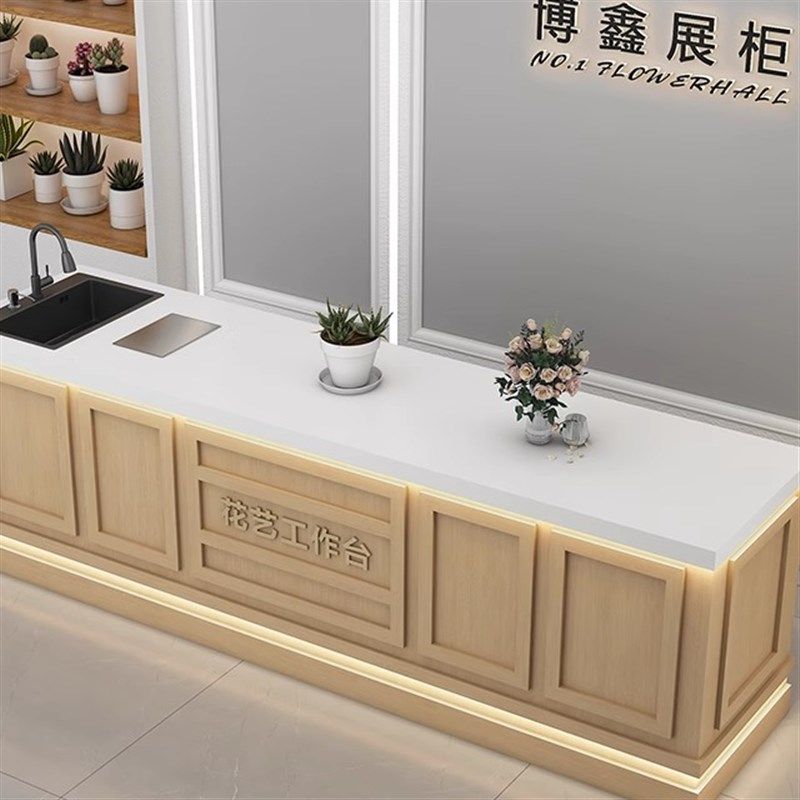 📚 花店操作台收银台咖啡店吧台水果店果切台公司休闲水吧台大理石