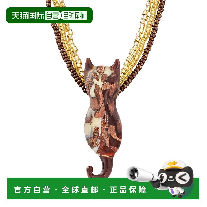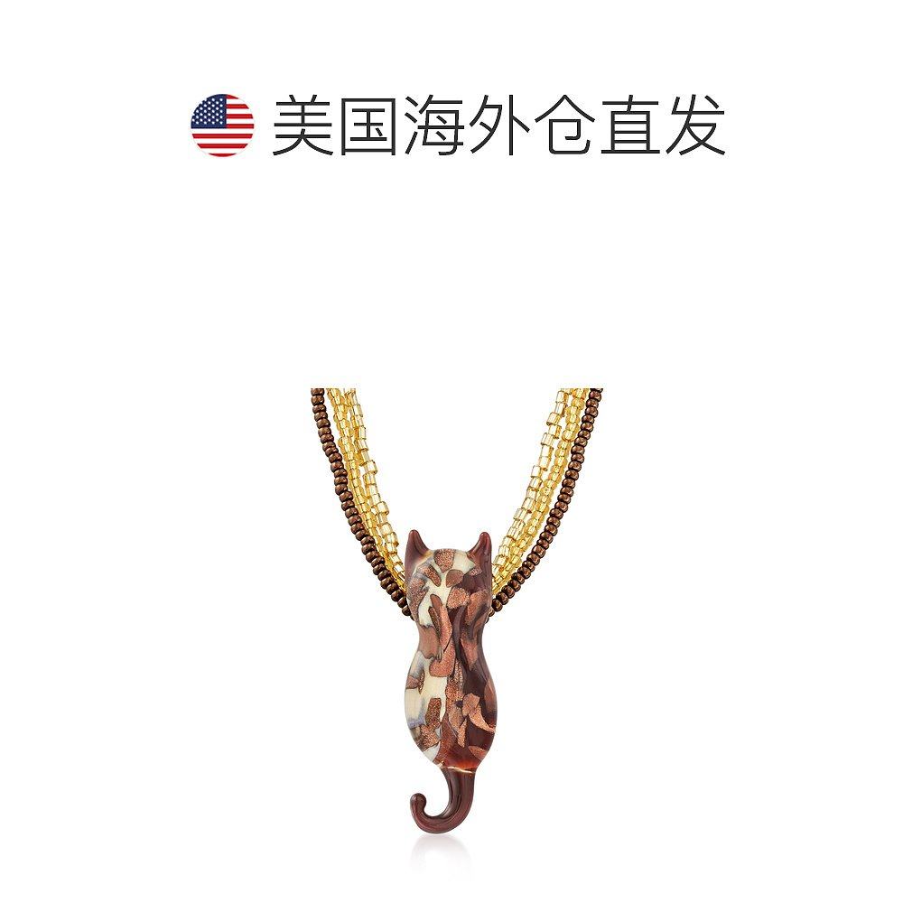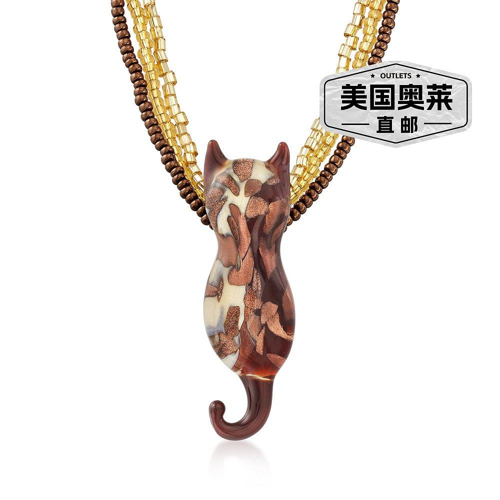 📚 自营Ross-Simons 意大利棕色和金色穆拉诺玻璃珠猫项链配 18 克拉