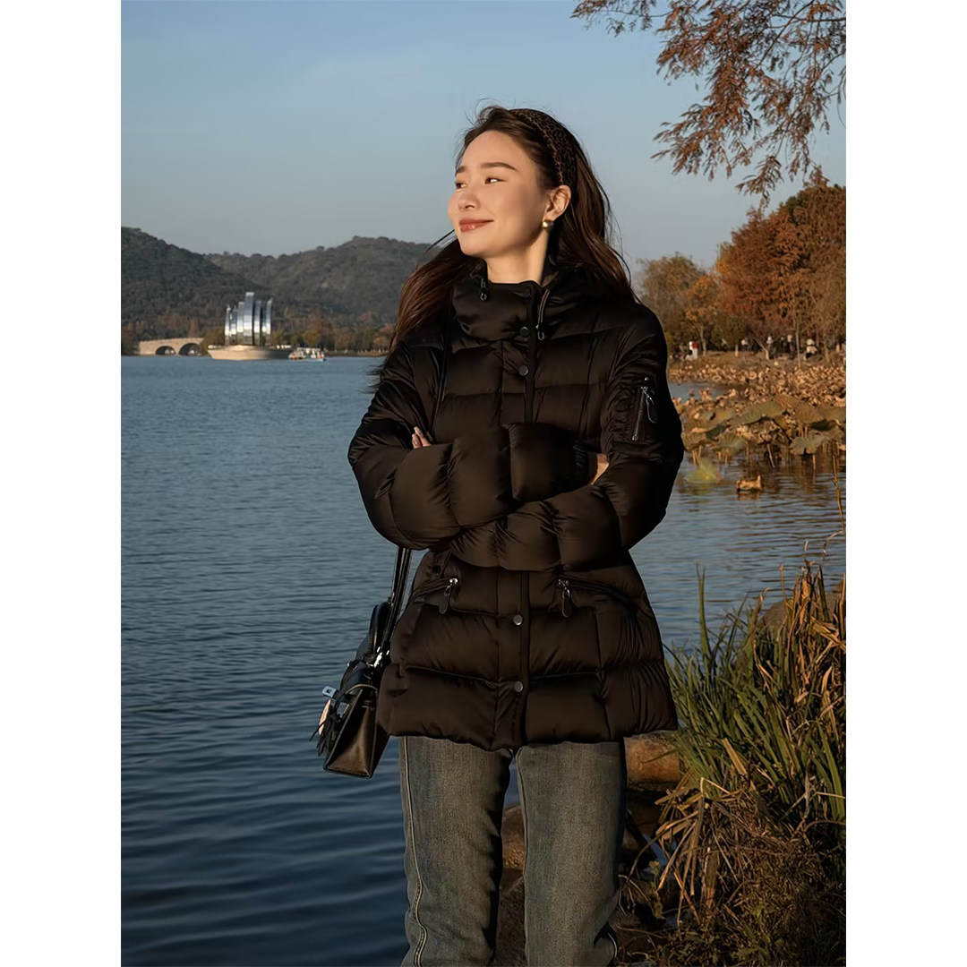 📚 邱莹莹 HELA AOMI “蒙家小裙摆”90白鸭绒掐腰连帽短款羽绒服