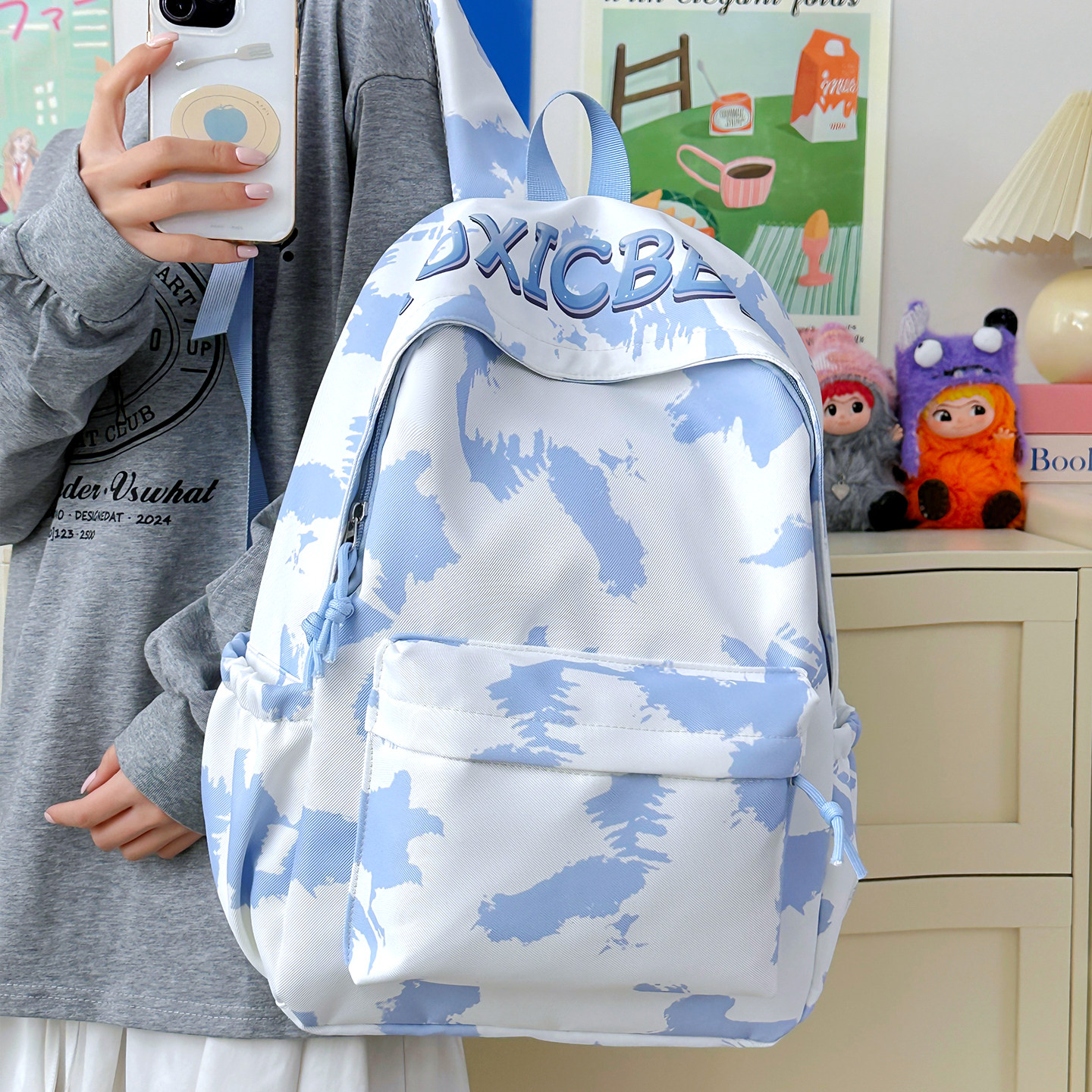 📚 蓝色书包初中女生ins小众不撞款背包大容量高中学生旅行双肩包潮