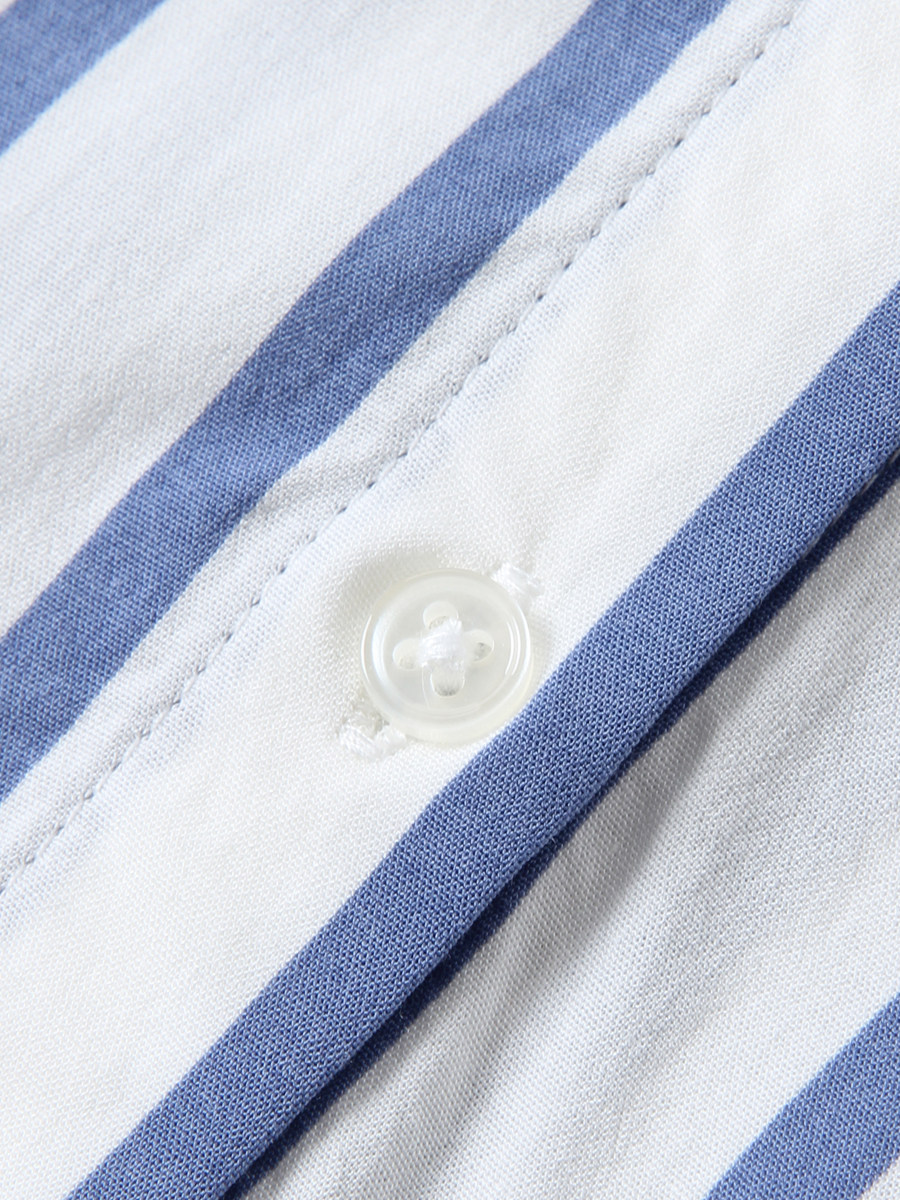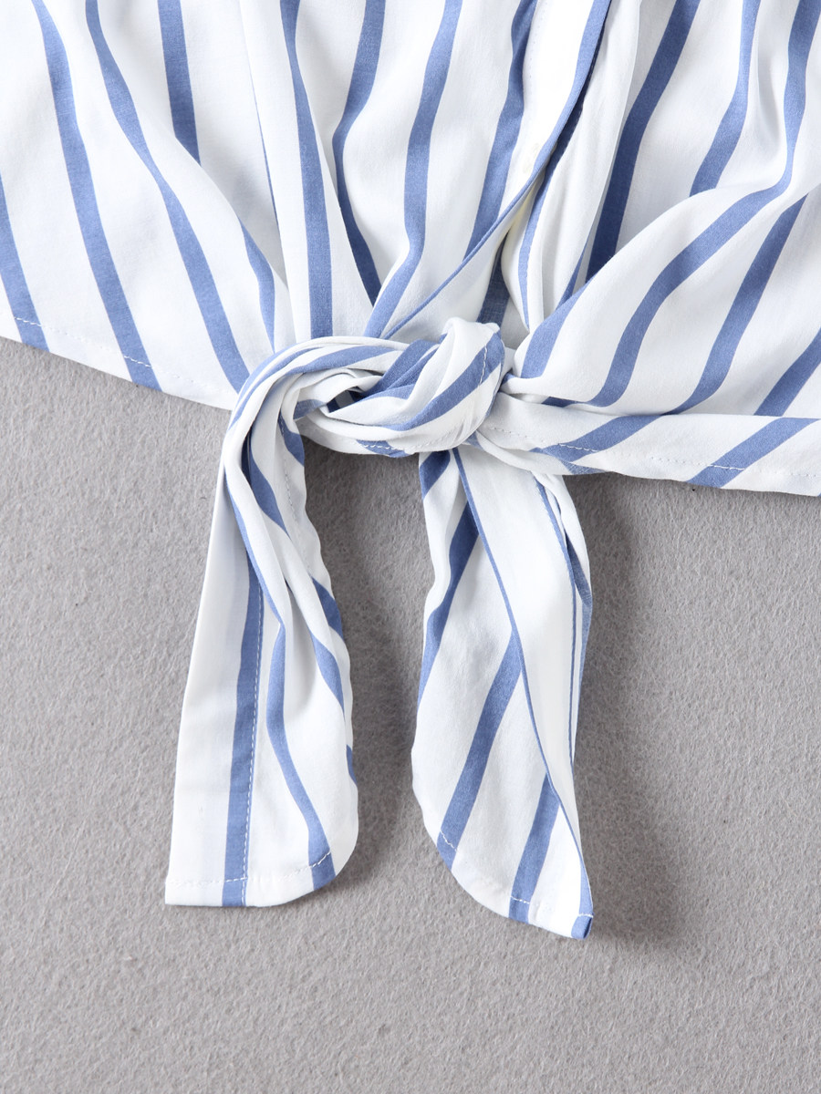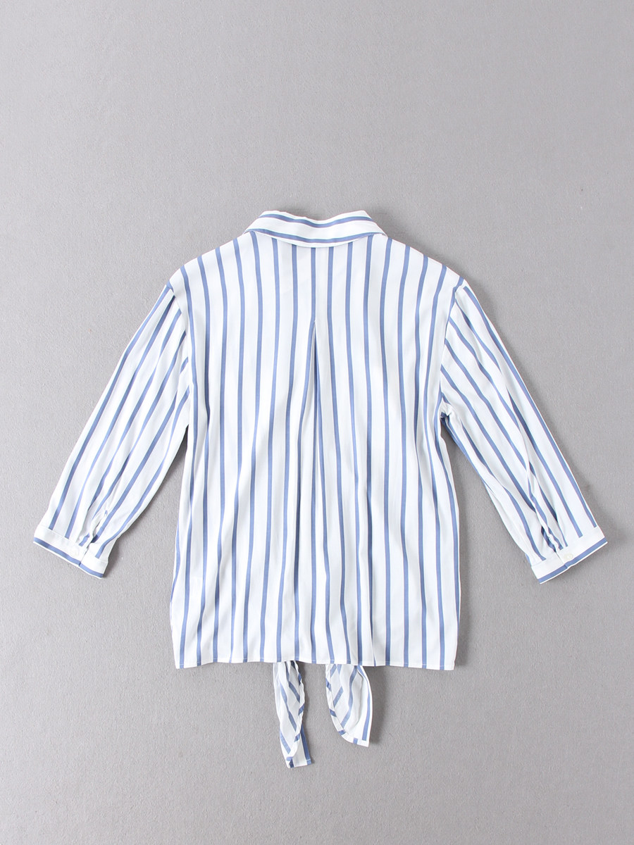 📚 出口加拿大单~女款百搭翻领蓝白竖条纹七分袖下摆打结衬衫