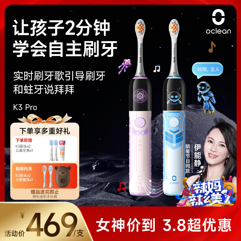 📚 OCLEAN/欧可林AI互动儿童电动牙刷4到12岁防蛀牙刷可连小天K3Pro