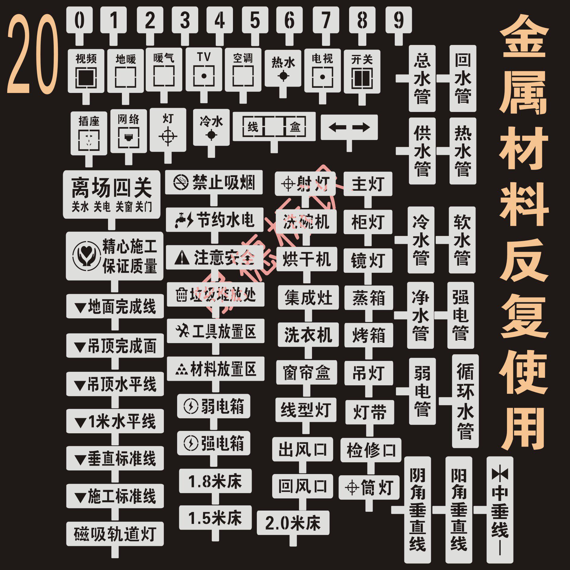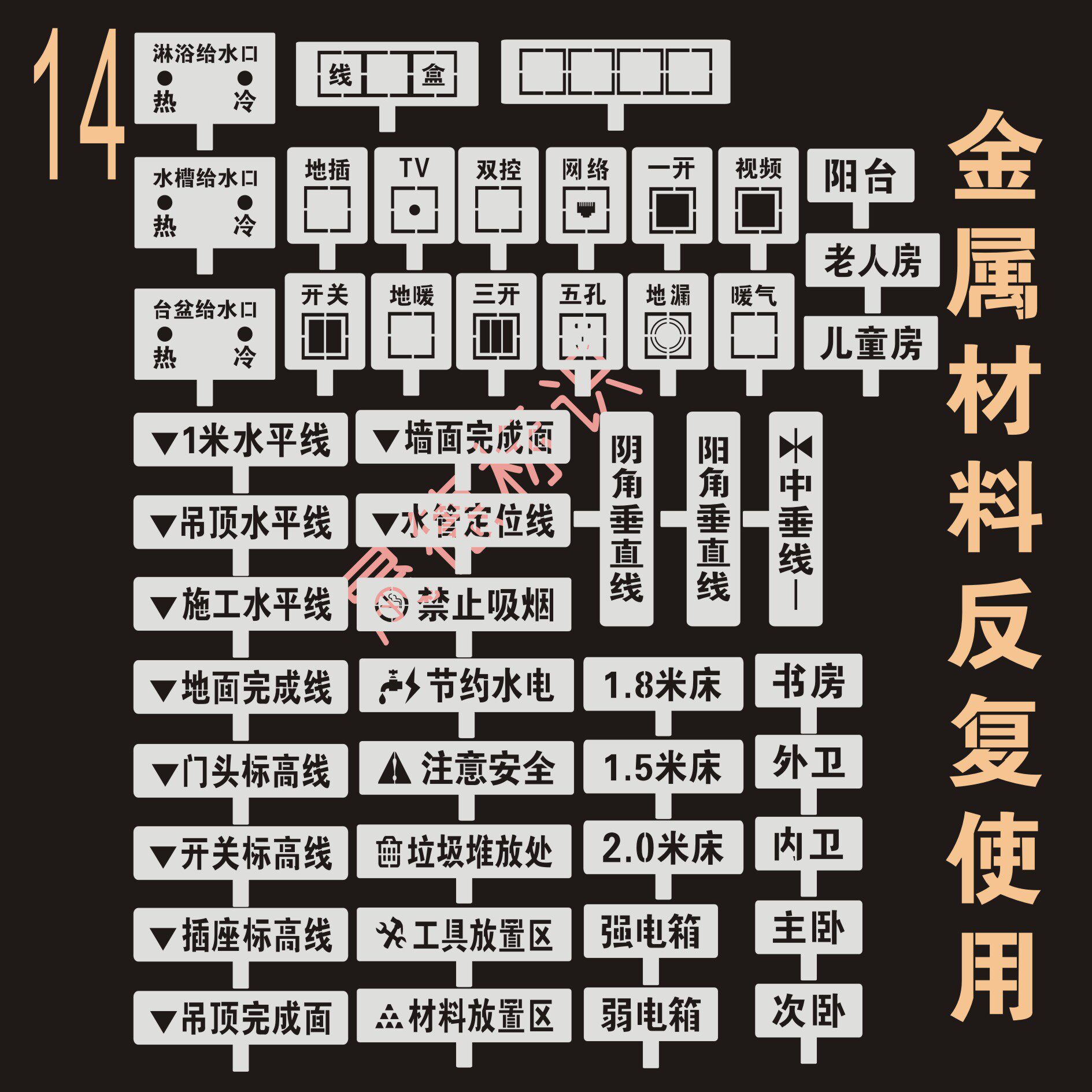 📚 定制装修放样模板家装字模水电定位放线标识工地施工镂空喷漆牌