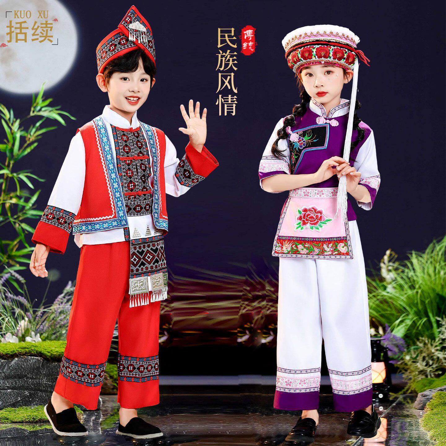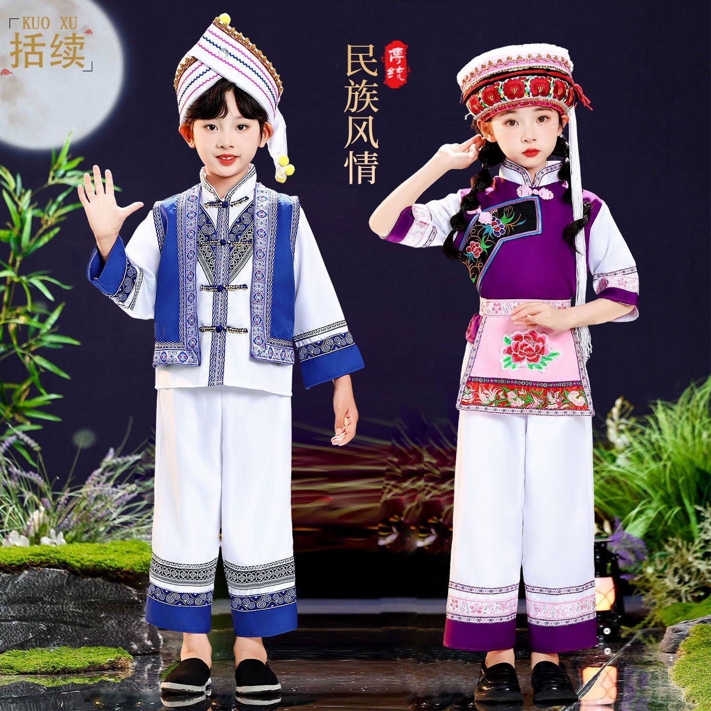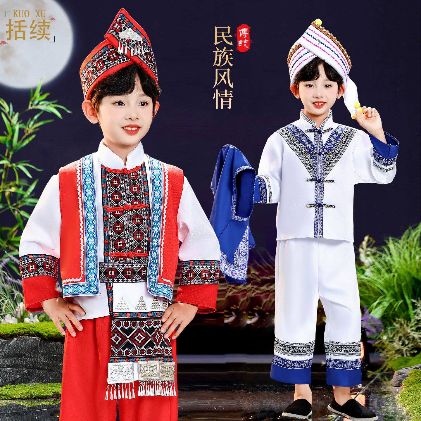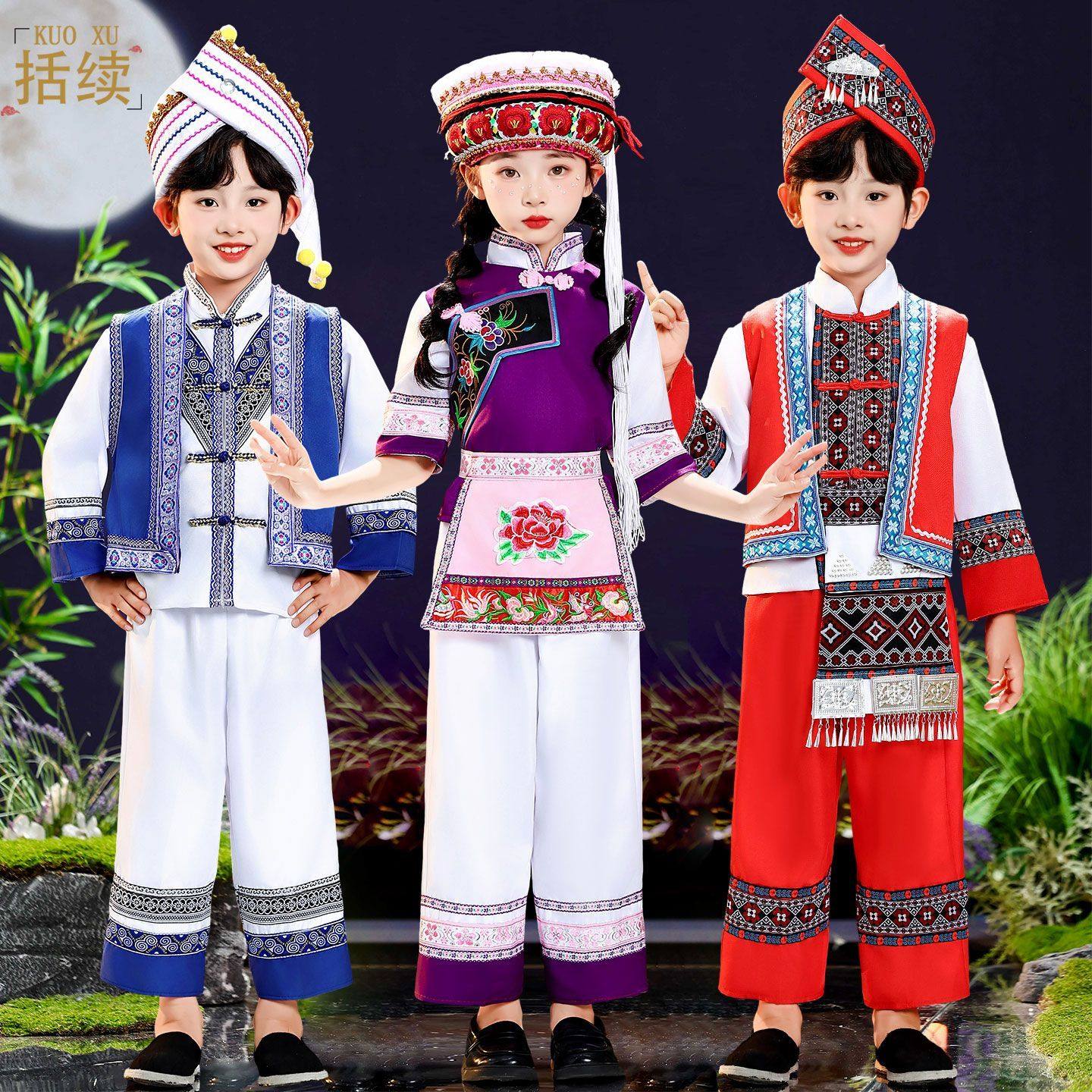 📚 云南大理儿童白族服装女童传统民族舞蹈服白族男童民族表演服