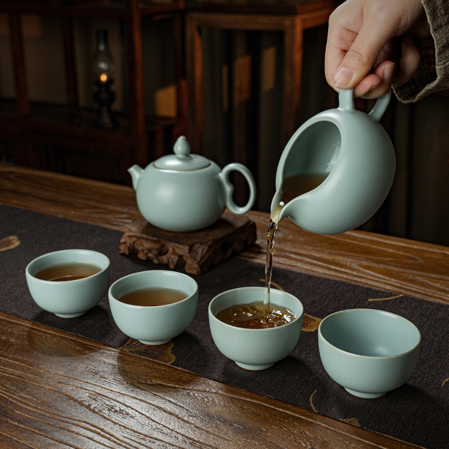 📚 汝窑功夫茶具套装茶壶套装家用泡茶客厅景德镇陶瓷汝瓷开片礼盒装
