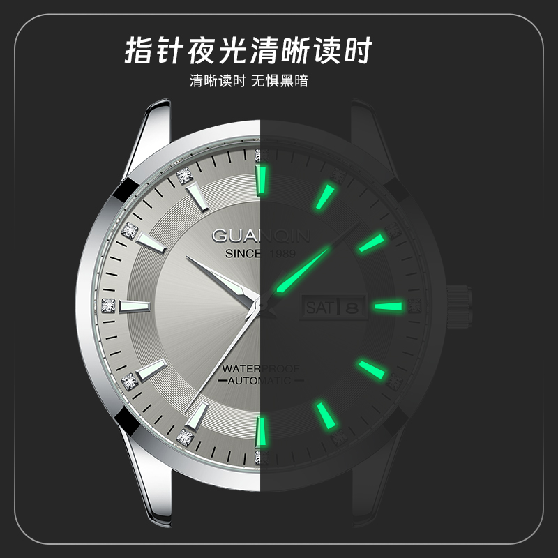 机械表钢带腕表夜光简约