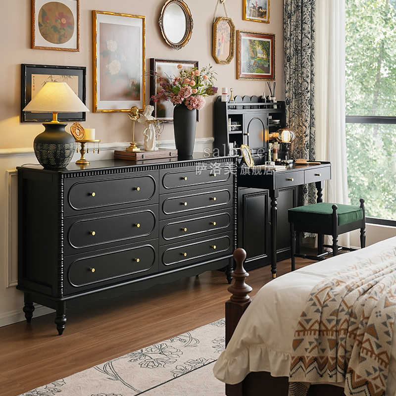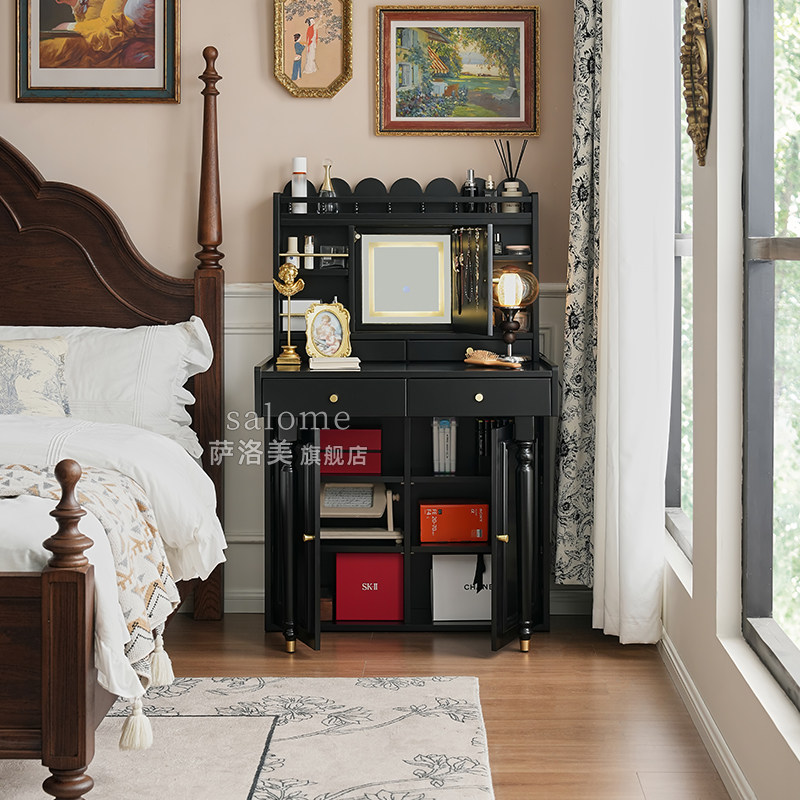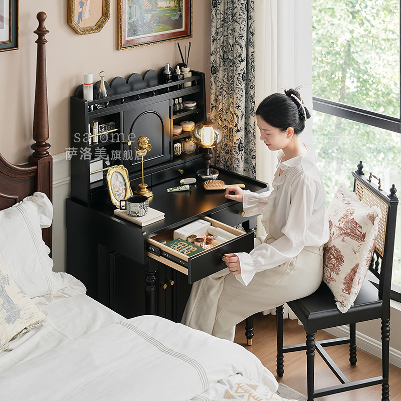 📚 法式实木化妆桌梳妆台卧室小户型中古风主卧梳妆桌书桌一体置物架