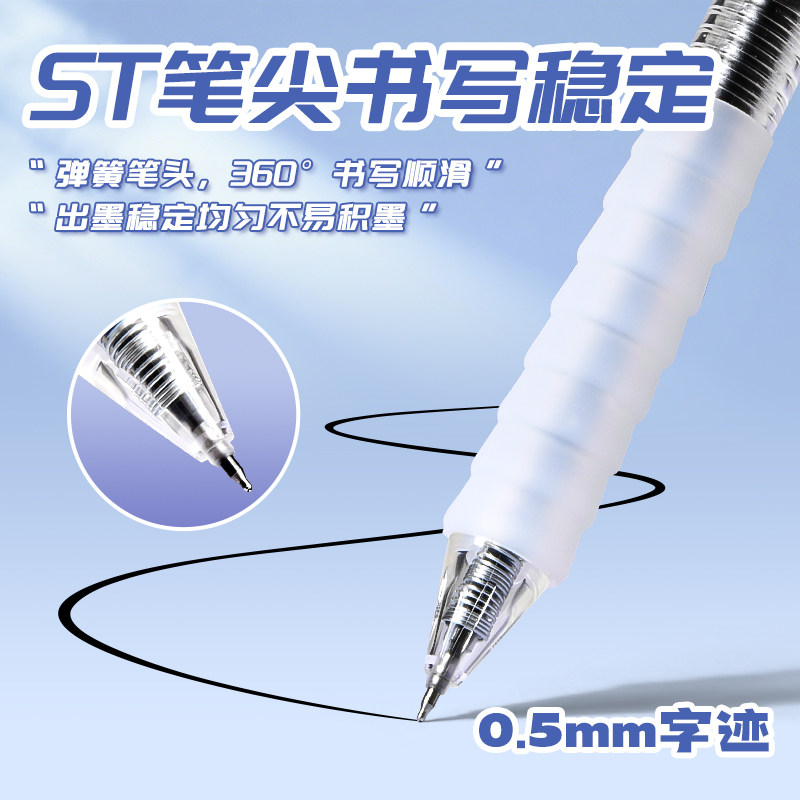 📚 晨光作业神器st笔头按动中性笔agpj0601舒适云握手软胶黑笔红笔速干顺滑学霸刷题专用学生用按压式水笔芯碳素