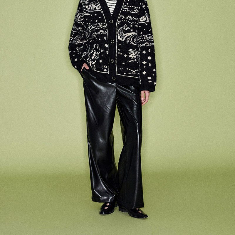 📚 SHRO ENRODéchainéesla系列 女士黑色直筒蛋白皮裤 301469