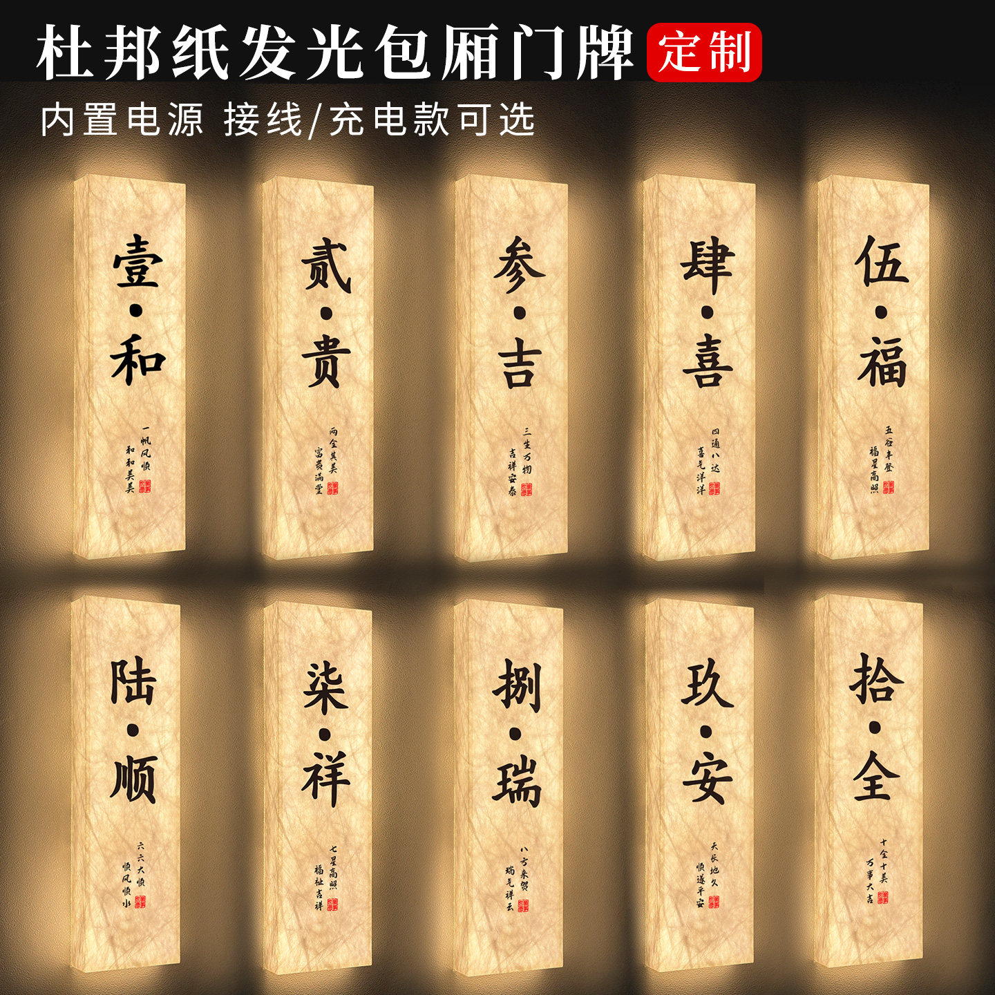 📚 国风杜邦纸发光包厢门牌定制麻将房棋牌室led充电包间牌饭店餐饮茶楼雅间包房牌ktv养生馆酒店民宿房间牌订做