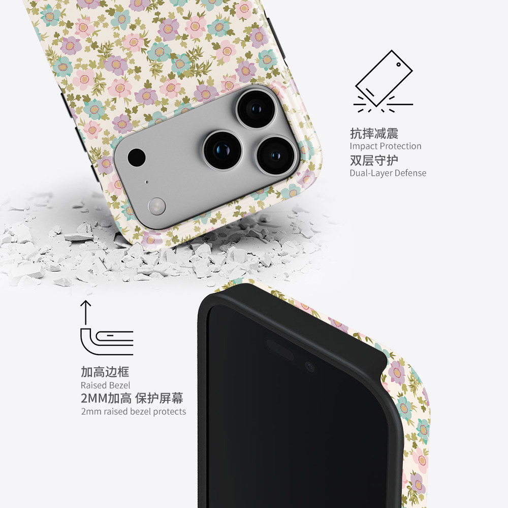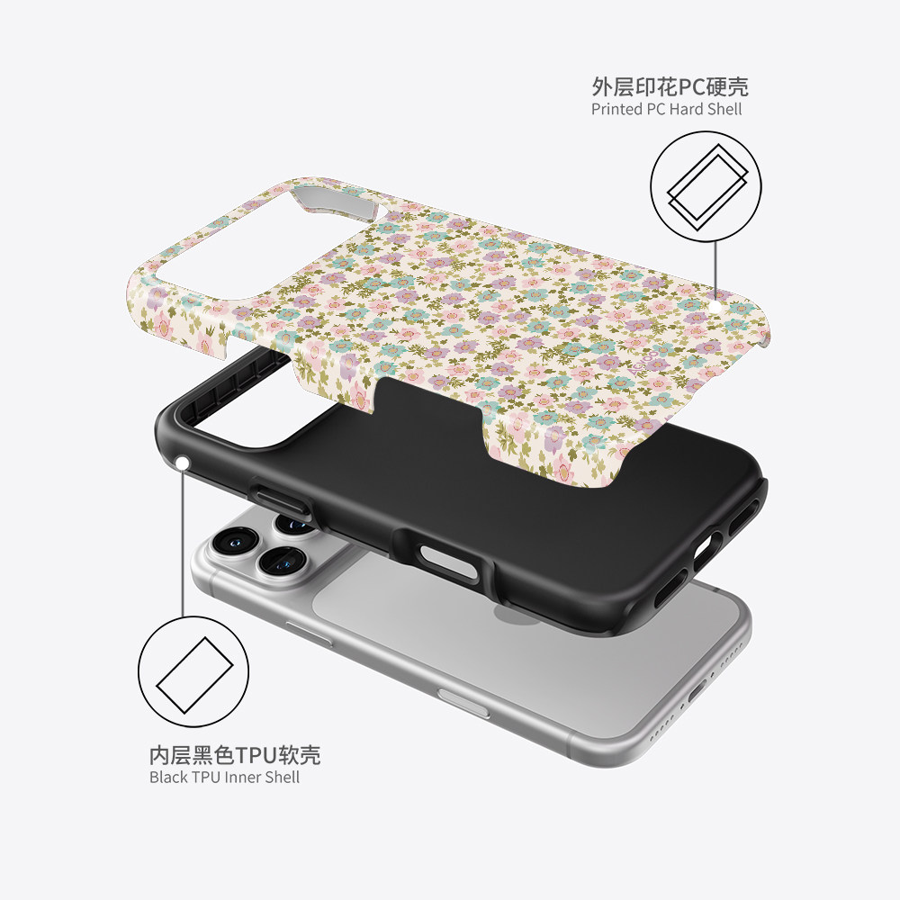 📚 Acvoo新款春日碎花女生iPhone16Promax适用于12双层15全包手机壳14